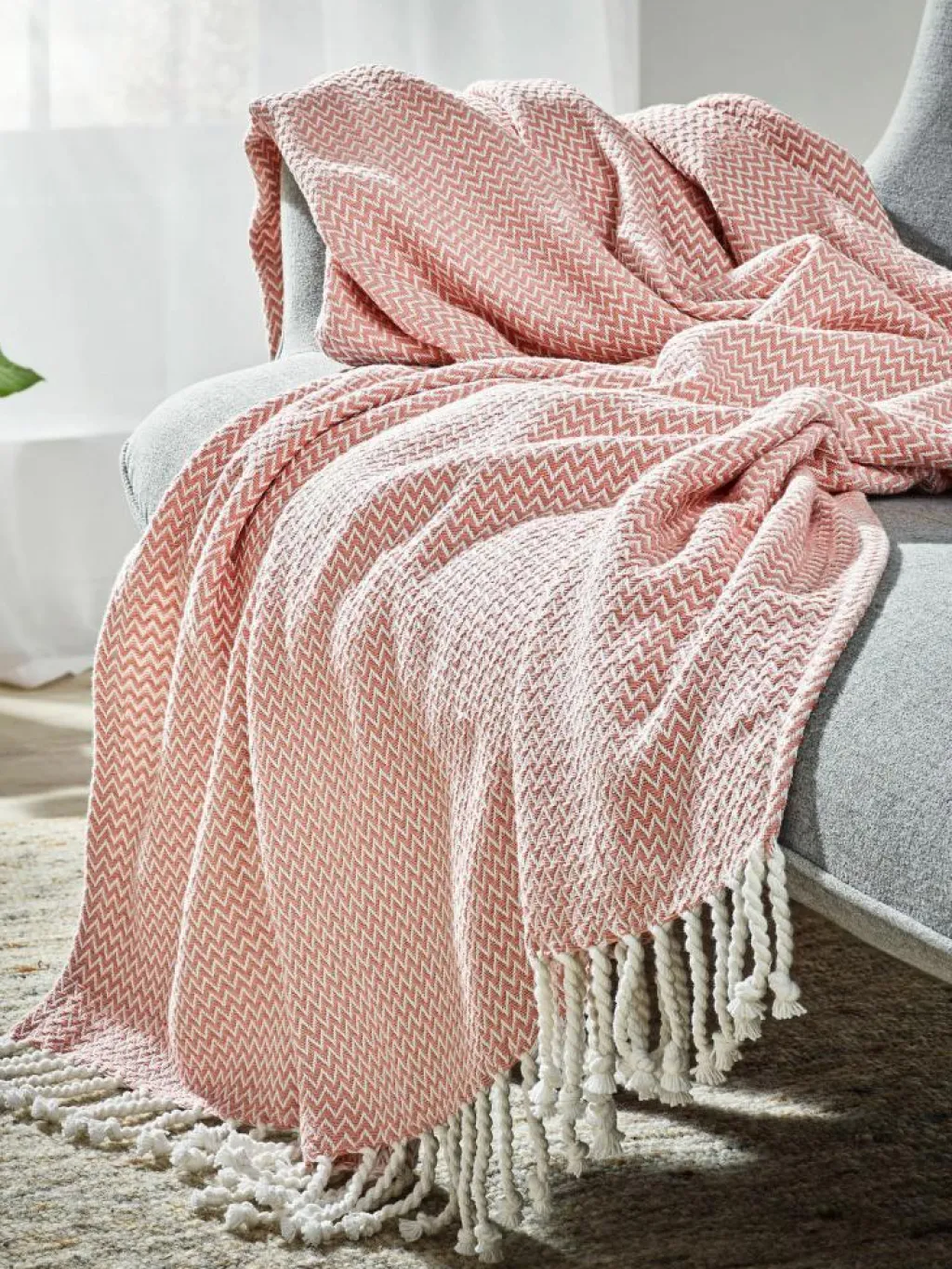 reiner Baumwolle gefertigt. Der hohe Materialeinsatz dieses feinen Jaquard-Gewebes bietet Wärme und lange Haltbarkeit. Zum pfiffigen Abschluss haben wir die JENSON-Decke mit Kordeln versehen. Oeko-Text Standard 100.