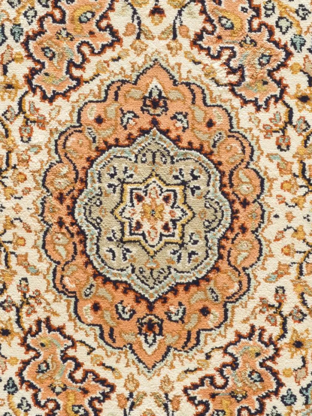-Teppiche sind eher zurückhaltend, die Muster nach wie vor sehr stark persisch beeinflusst. Florale Motive und das persischeFeldermuster
