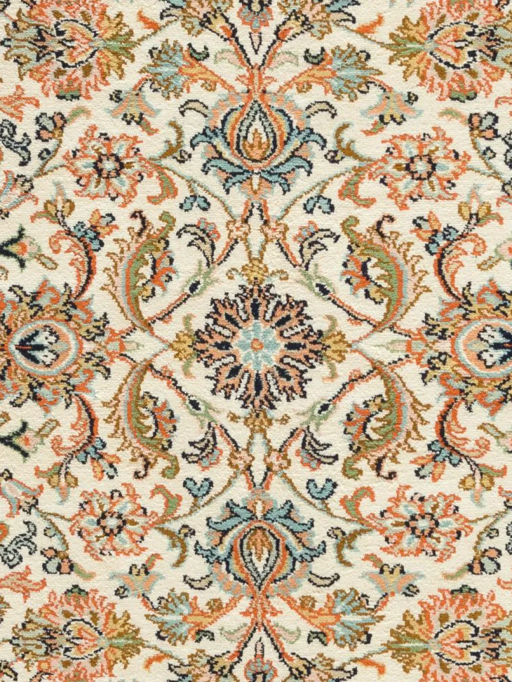 -Teppiche sind eher zurückhaltend, die Muster nach wie vor sehr stark persisch beeinflusst. Florale Motive und das persischeFeldermuster