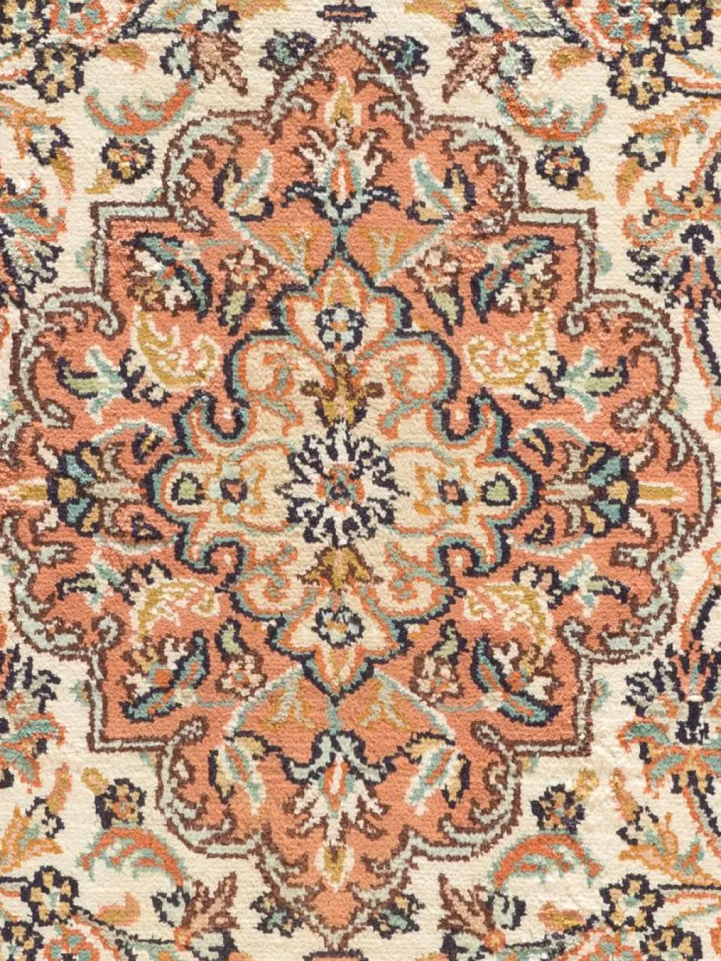 -Teppiche sind eher zurückhaltend, die Muster nach wie vor sehr stark persisch beeinflusst. Florale Motive und das persischeFeldermuster