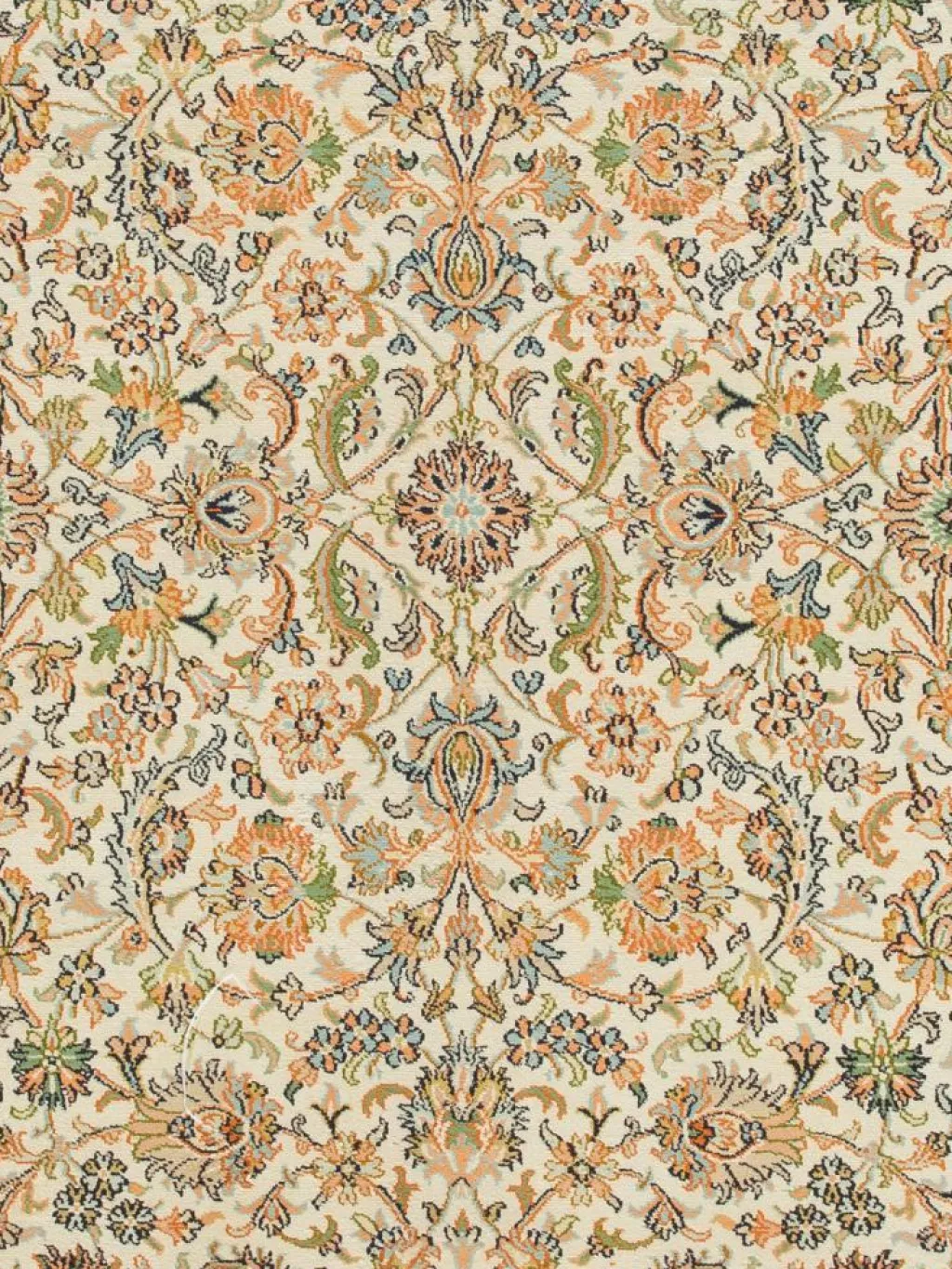 -Teppiche sind eher zurückhaltend, die Muster nach wie vor sehr stark persisch beeinflusst. Florale Motive und das persischeFeldermuster