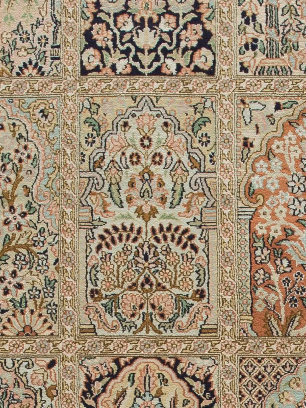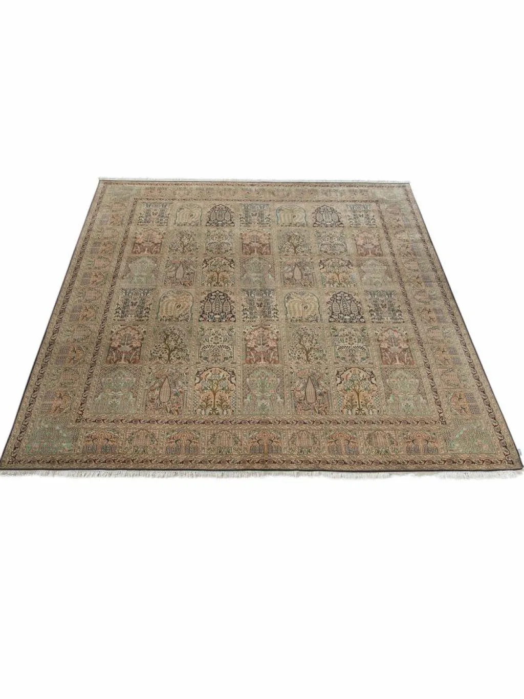 -Teppiche sind eher zurückhaltend, die Muster nach wie vor sehr stark persisch beeinflusst. Florale Motive und das persischeFeldermuster