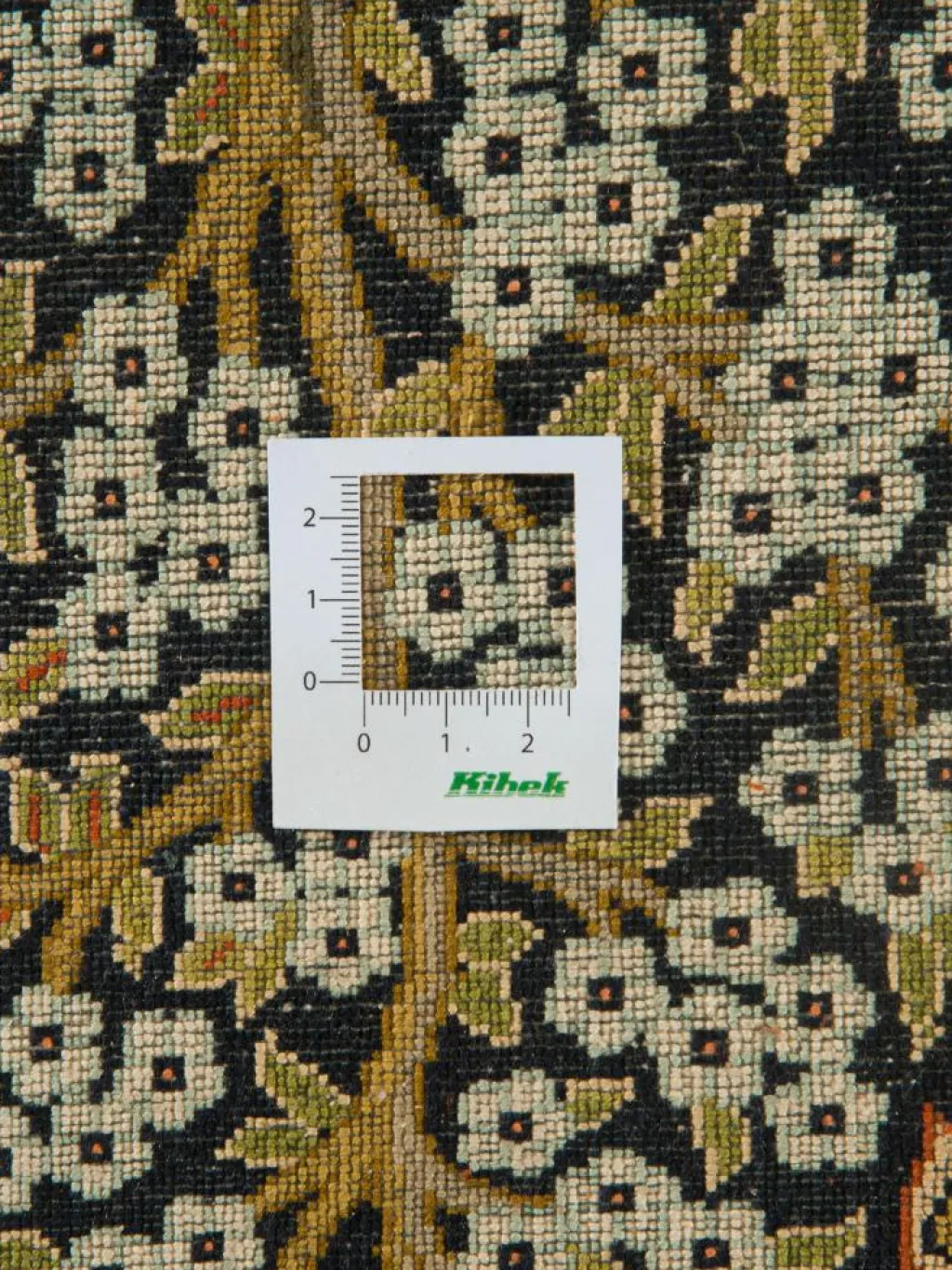 -Teppiche sind eher zurückhaltend, die Muster nach wie vor sehr stark persisch beeinflusst. Florale Motive und das persischeFeldermuster