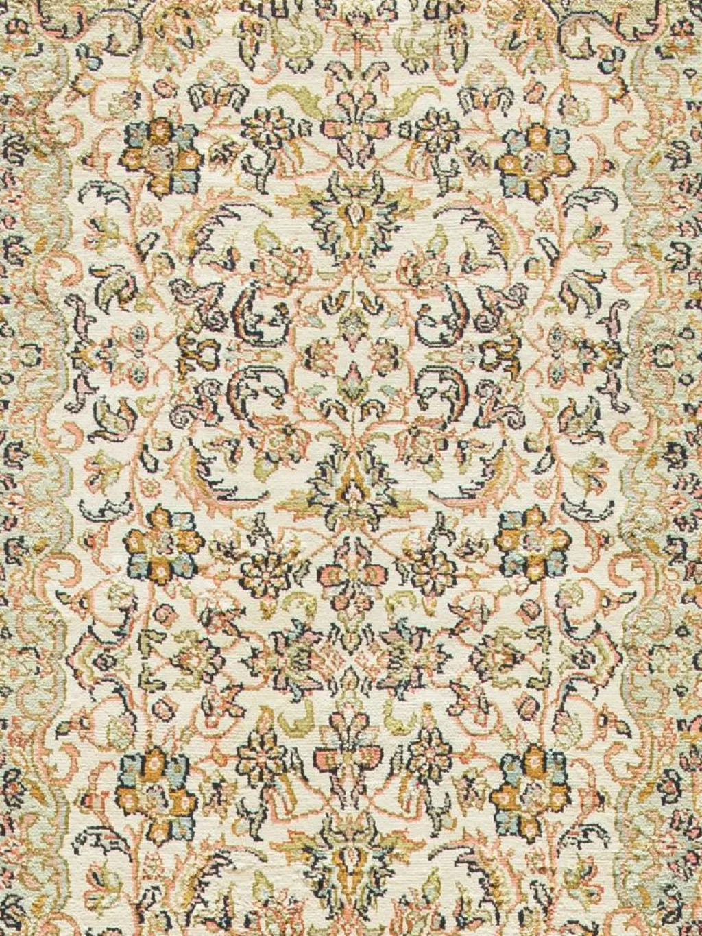 -Teppiche sind eher zurückhaltend, die Muster nach wie vor sehr stark persisch beeinflusst. Florale Motive und das persischeFeldermuster