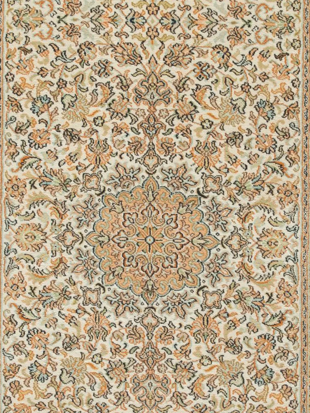 -Teppiche sind eher zurückhaltend, die Muster nach wie vor sehr stark persisch beeinflusst. Florale Motive und das persischeFeldermuster