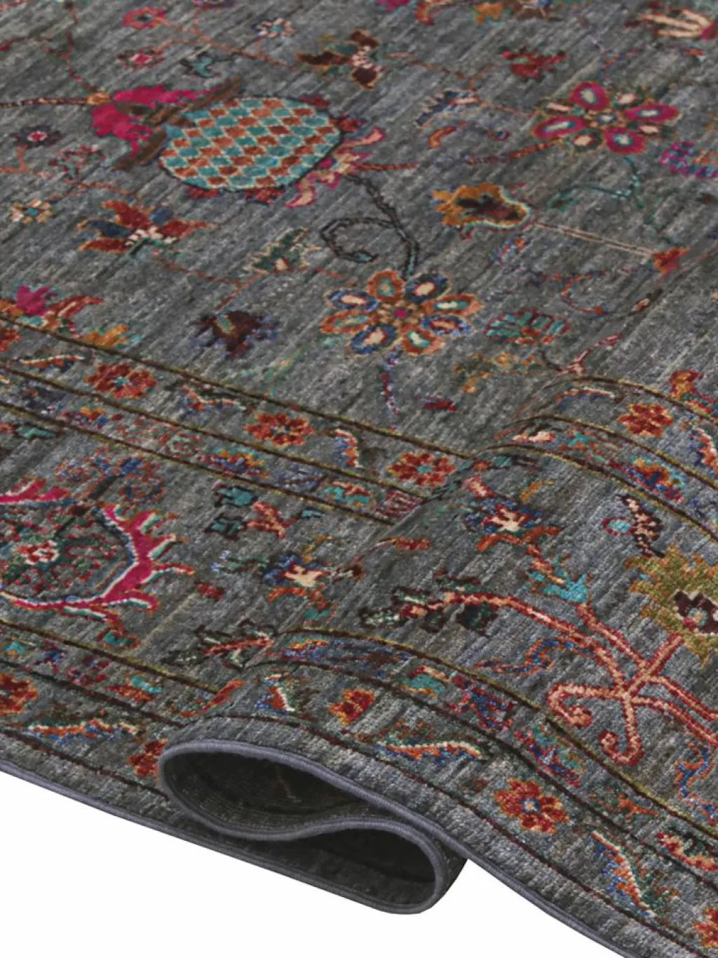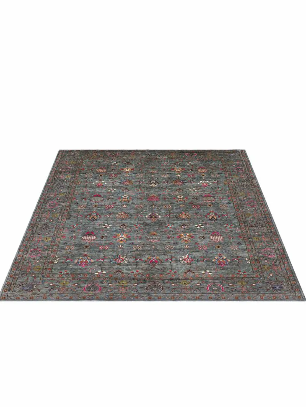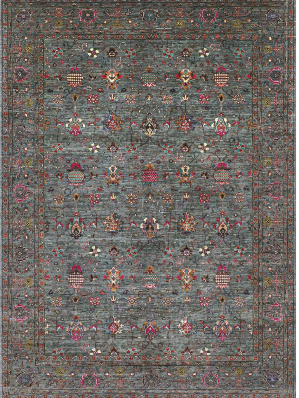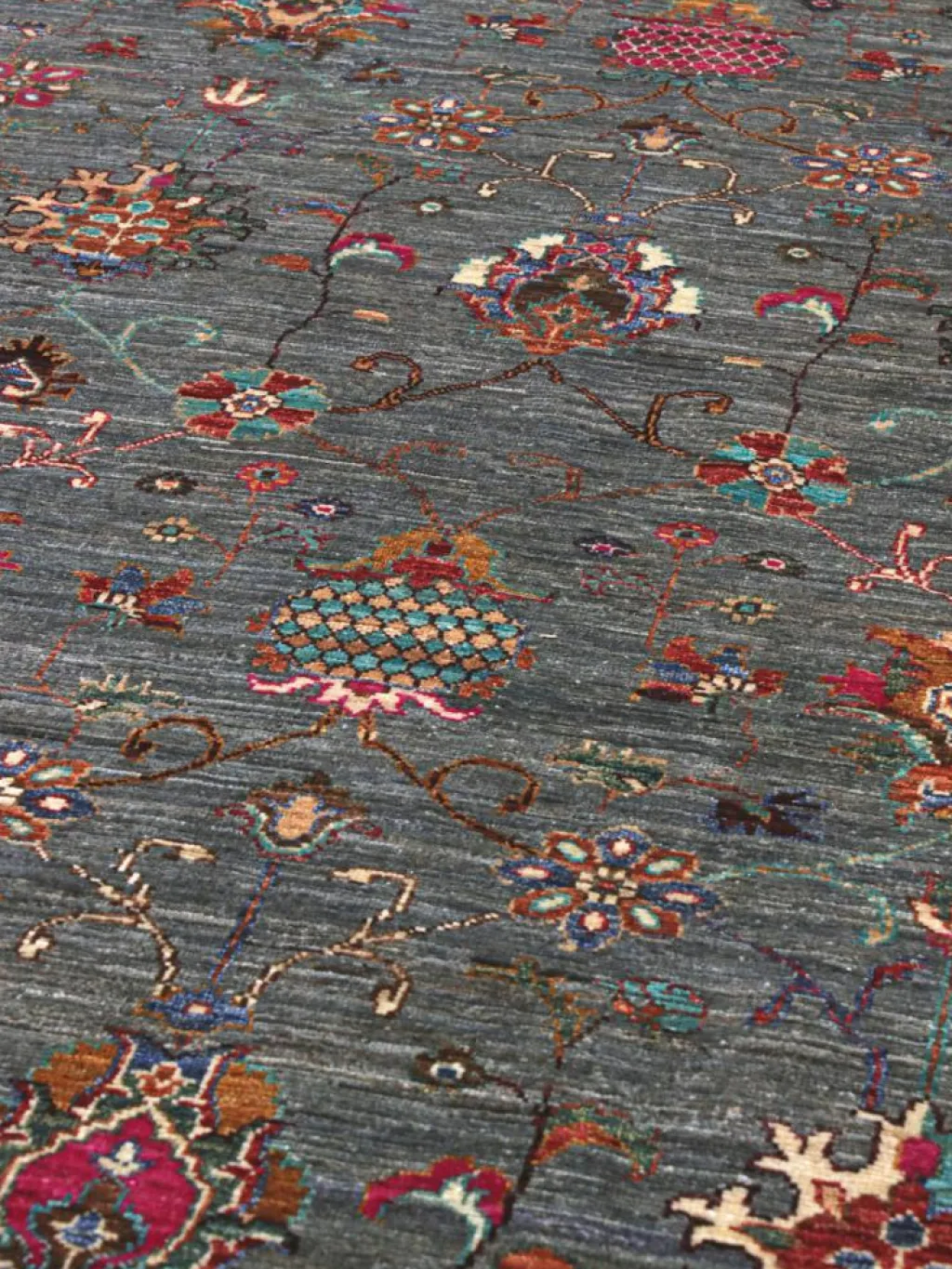 , einem klassischen Blütenmuster. Das Wort „Phool“ kommt aus der Pakistanischen Sprache Urdu und bedeutet „Blume“. Durch den flachen und festen Flor ist der Teppich unempfindlich gegenüber den Belastungen des Alltags. – Der Teppich wurde ausGhazni