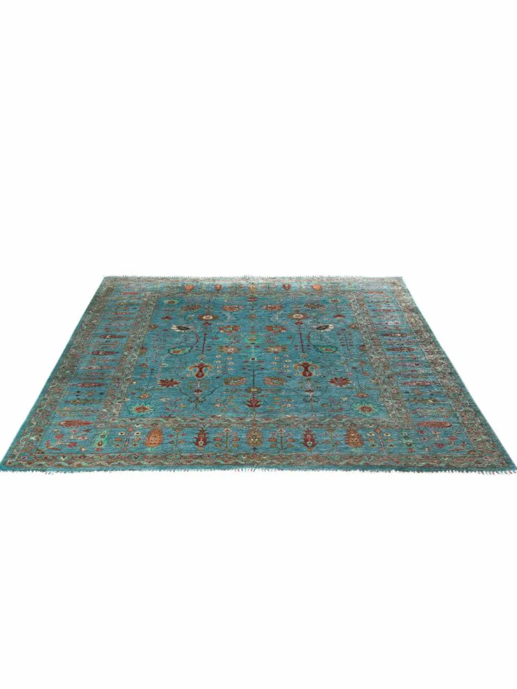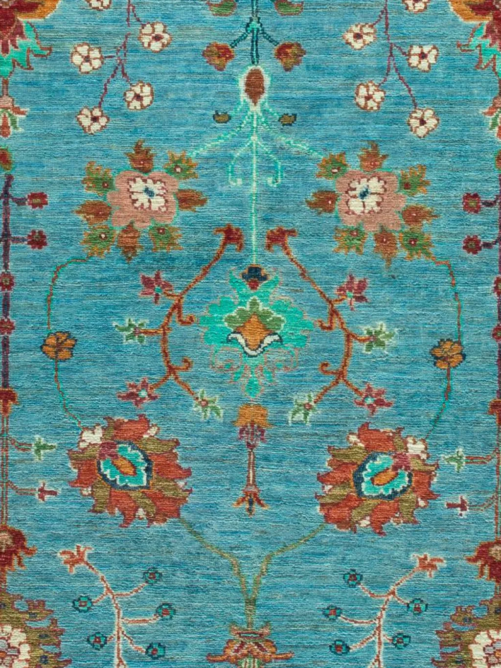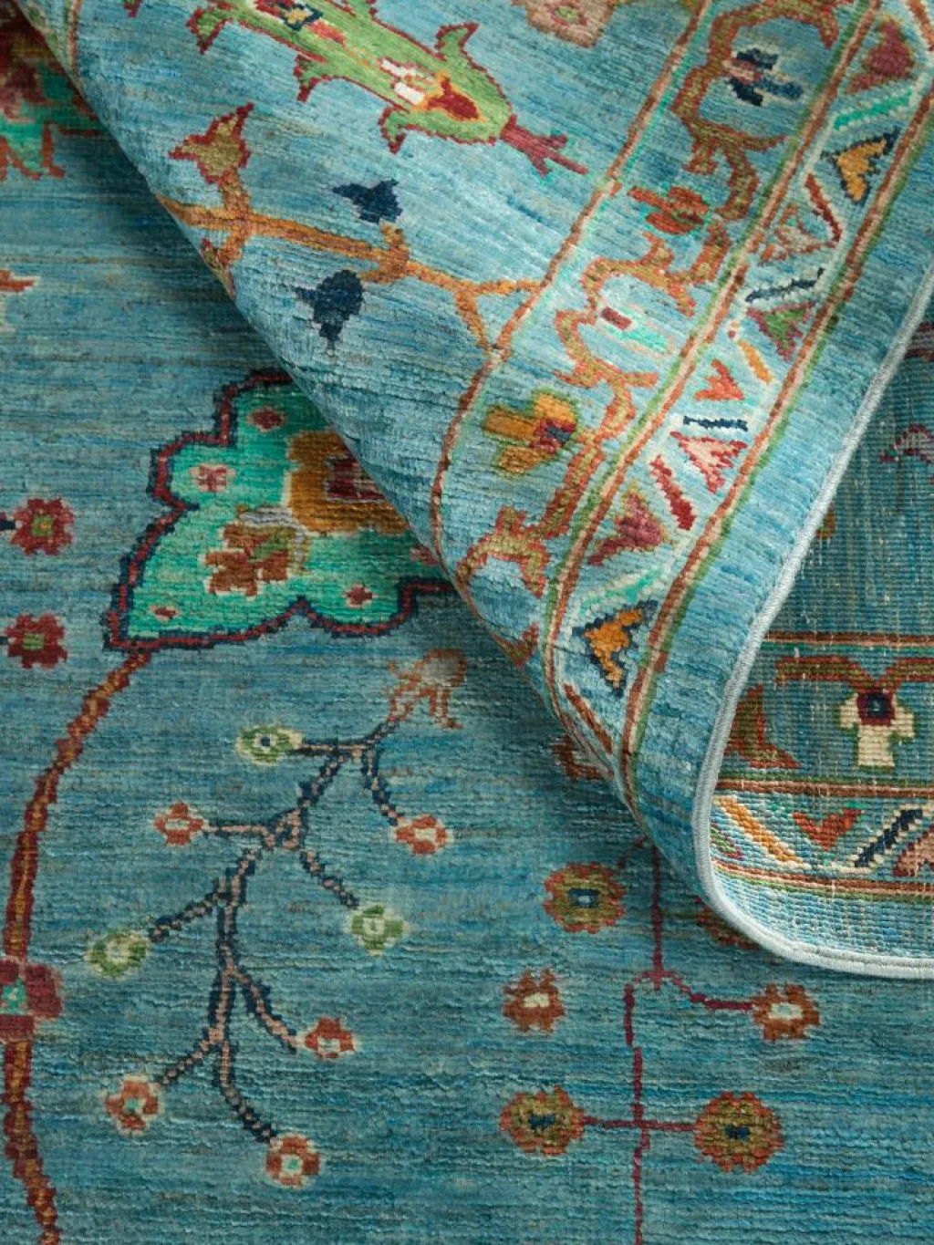 , einem klassischen Blütenmuster. Das Wort „Phool“ kommt aus der Pakistanischen Sprache Urdu und bedeutet „Blume“. Durch den flachen und festen Flor ist der Teppich unempfindlich gegenüber den Belastungen des Alltags. – Der Teppich wurde ausGhazni