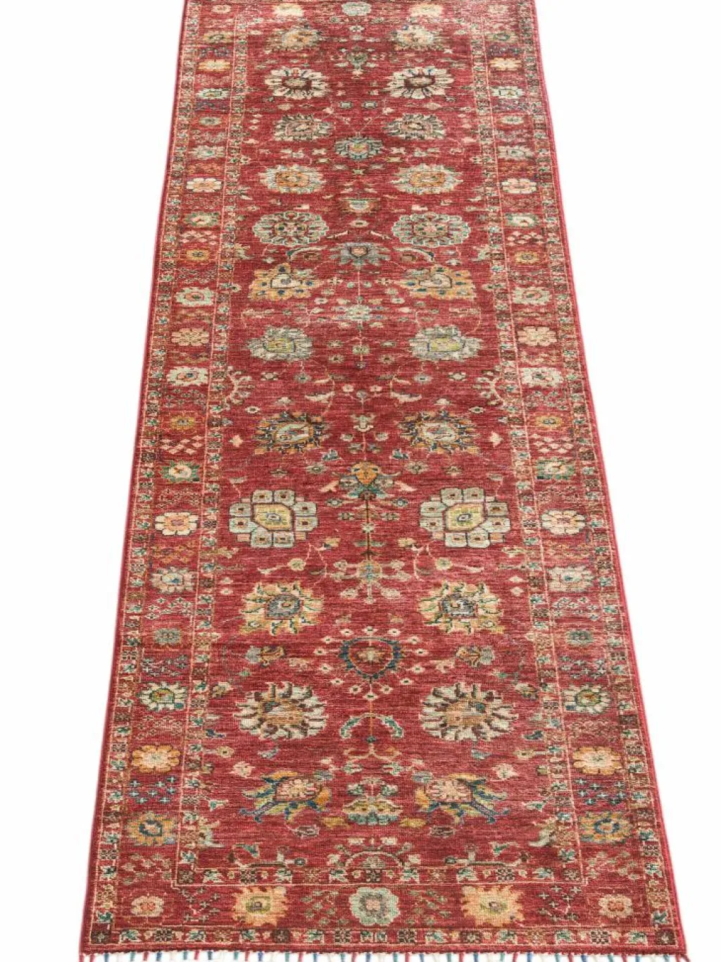 , einem klassischen Blütenmuster. Das Wort „Phool“ kommt aus der Pakistanischen Sprache Urdu und bedeutet „“Blume““. Durch den flachen und festen Flor ist der Teppich unempfindlich gegenüber den Belastungen des Alltags. – Der Teppich wurde ausGhazni