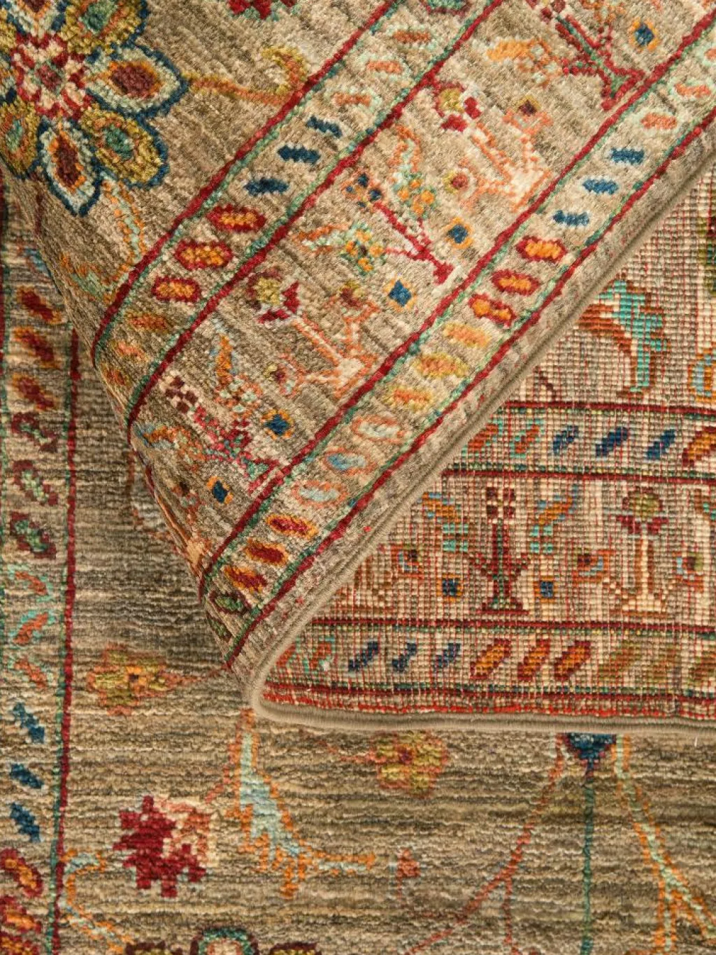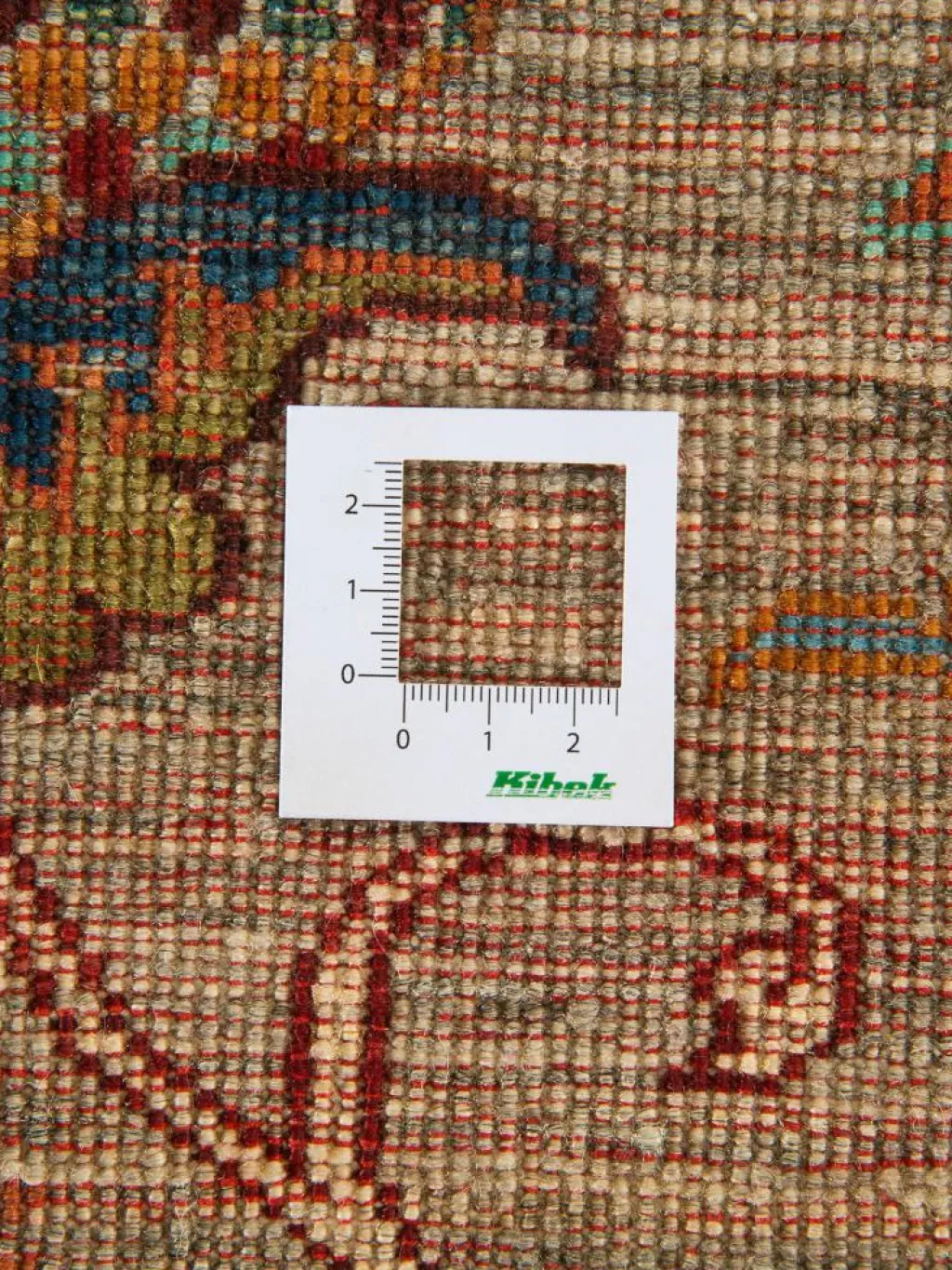 , einem klassischen Blütenmuster. Das Wort „Phool“ kommt aus der Pakistanischen Sprache Urdu und bedeutet „Blume“. Durch den flachen und festen Flor ist der Teppich unempfindlich gegenüber den Belastungen des Alltags. – Der Teppich wurde ausGhazni