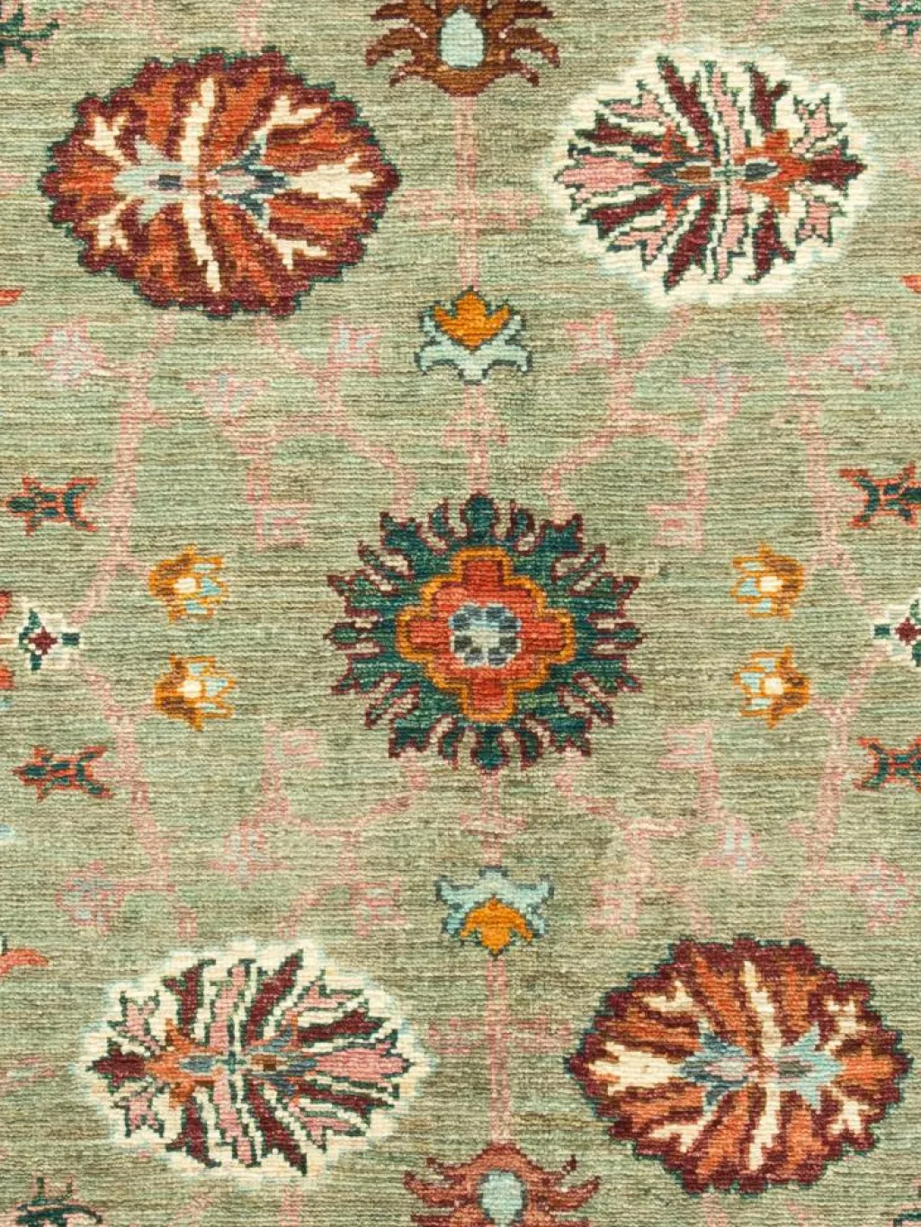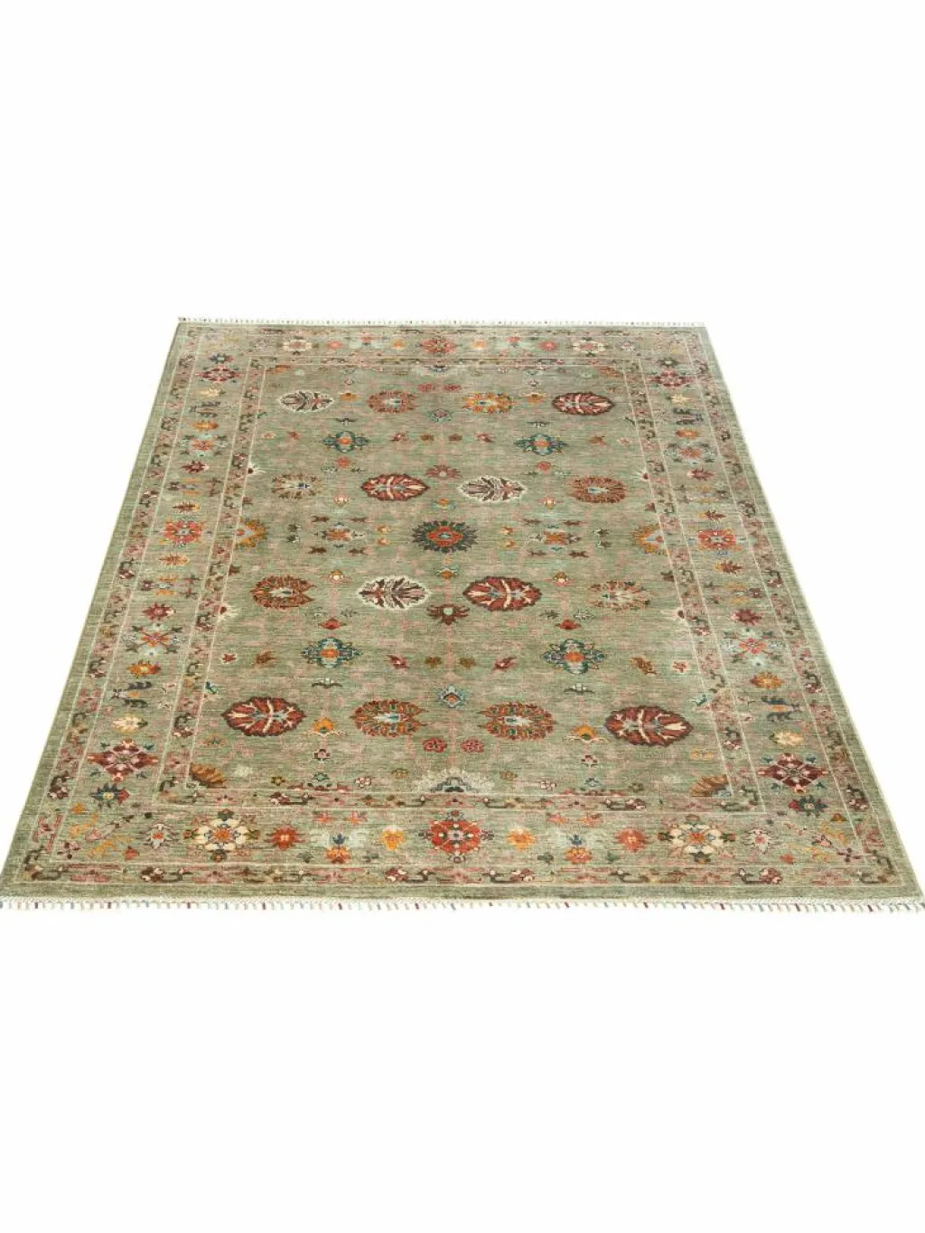 , einem klassischen Blütenmuster. Das Wort „Phool“ kommt aus der Pakistanischen Sprache Urdu und bedeutet „Blume“. Durch den flachen und festen Flor ist der Teppich unempfindlich gegenüber den Belastungen des Alltags. – Der Teppich wurde ausGhazni