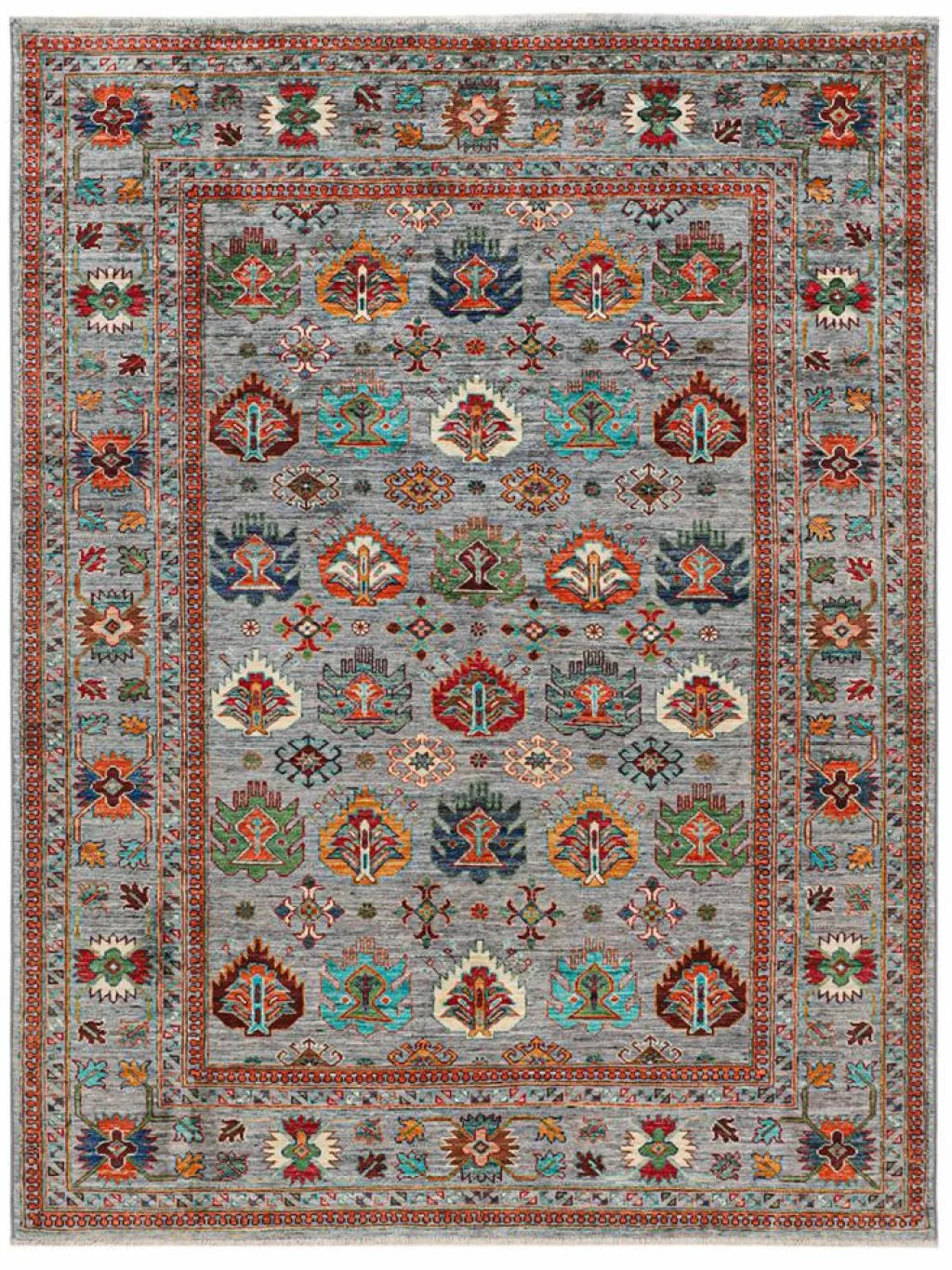 , einem klassischen Blütenmuster. Das Wort „Phool“ kommt aus der Pakistanischen Sprache Urdu und bedeutet „“Blume““. Durch den flachen und festen Flor ist der Teppich unempfindlich gegenüber den Belastungen des Alltags. – Der Teppich wurde ausGhazni