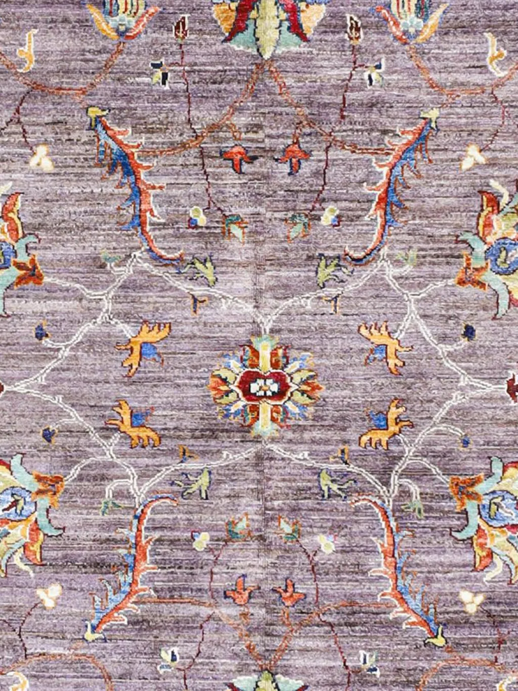 , einem klassischen Blütenmuster. Das Wort „Phool“ kommt aus der Pakistanischen Sprache Urdu und bedeutet „“Blume““. Durch den flachen und festen Flor ist der Teppich unempfindlich gegenüber den Belastungen des Alltags. – Der Teppich wurde ausGhazni