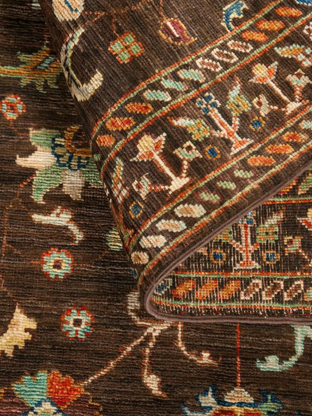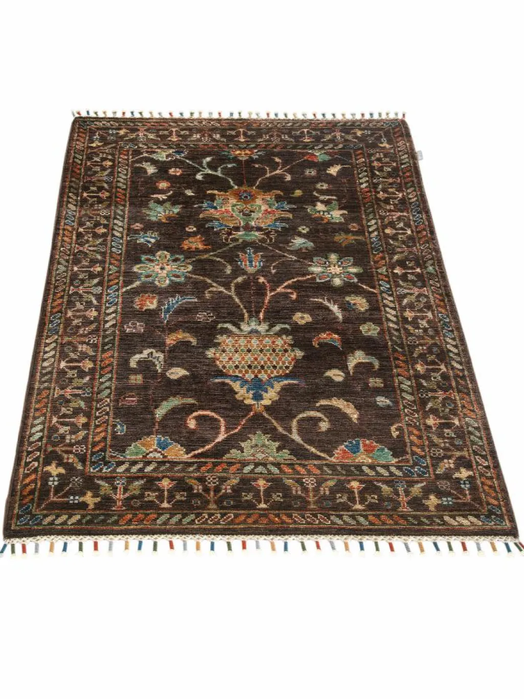 , einem klassischen Blütenmuster. Das Wort „Phool“ kommt aus der Pakistanischen Sprache Urdu und bedeutet „Blume“. Durch den flachen und festen Flor ist der Teppich unempfindlich gegenüber den Belastungen des Alltags. – Der Teppich wurde ausGhazni