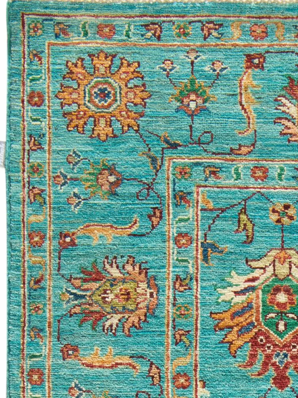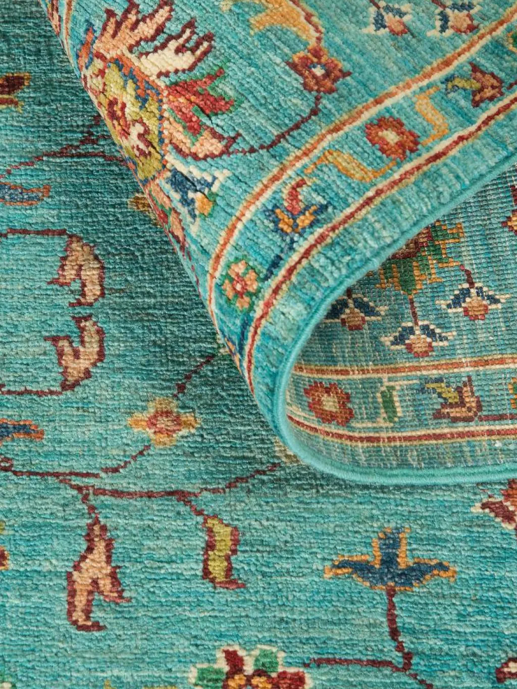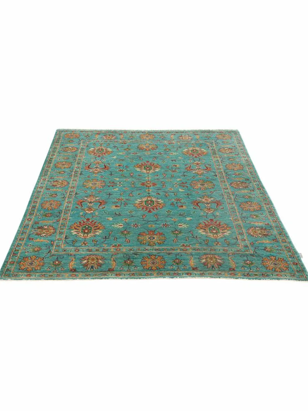 , einem klassischen Blütenmuster. Das Wort „Phool“ kommt aus der Pakistanischen Sprache Urdu und bedeutet „“Blume““. Durch den flachen und festen Flor ist der Teppich unempfindlich gegenüber den Belastungen des Alltags. – Der Teppich wurde ausGhazni