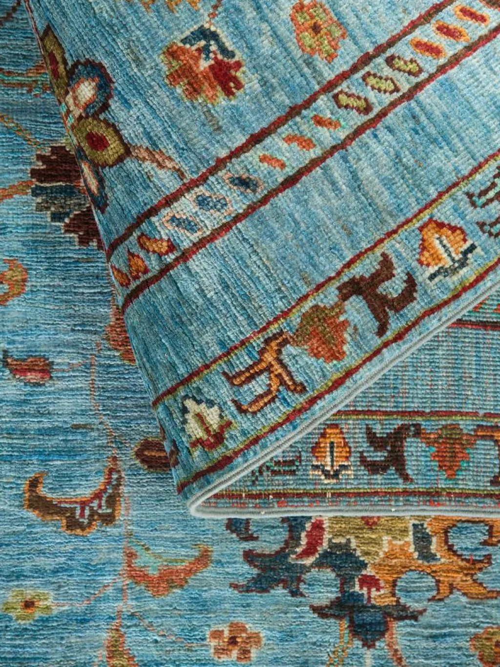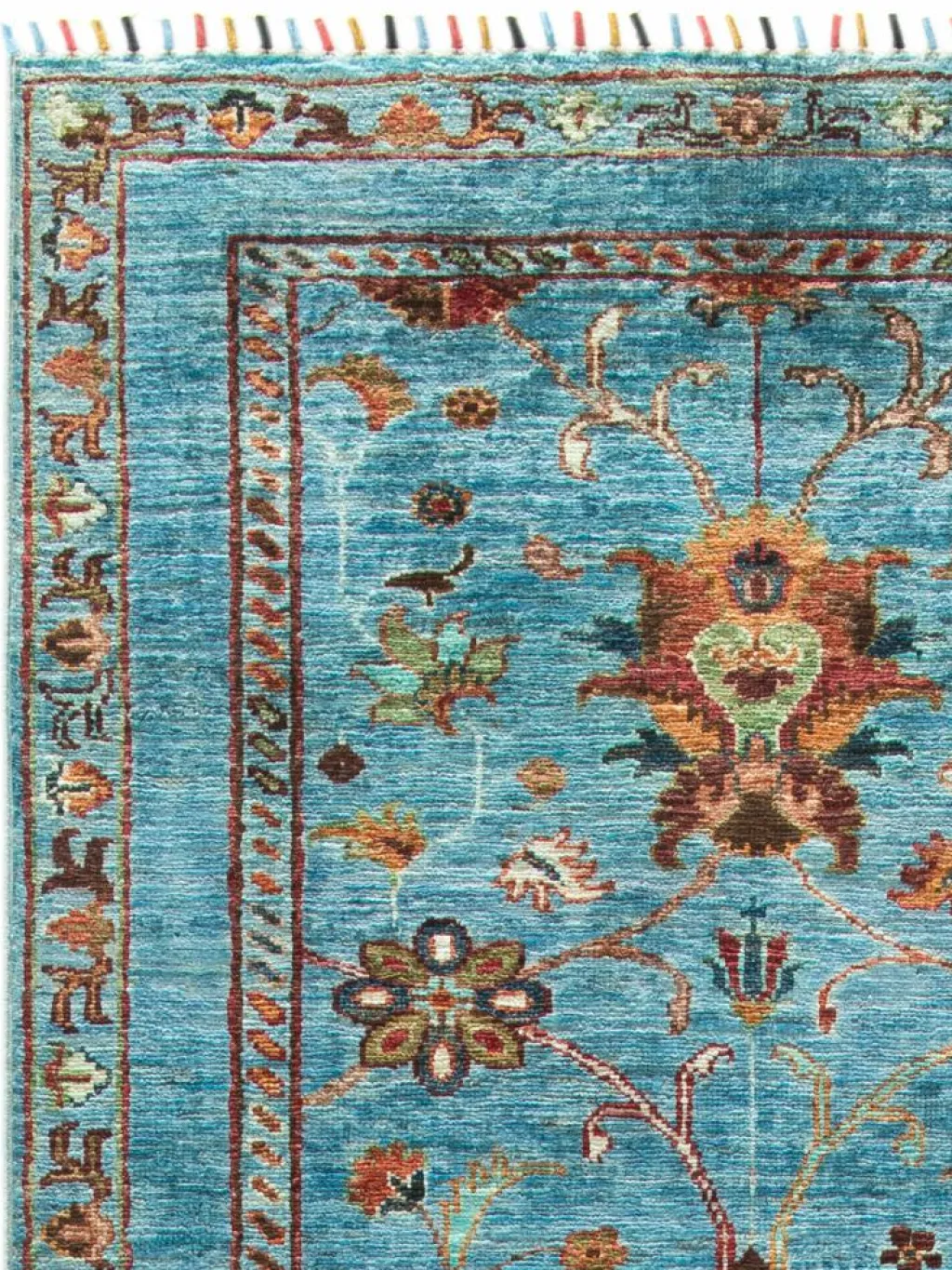 , einem klassischen Blütenmuster. Das Wort „Phool“ kommt aus der Pakistanischen Sprache Urdu und bedeutet „Blume“. Durch den flachen und festen Flor ist der Teppich unempfindlich gegenüber den Belastungen des Alltags. – Der Teppich wurde ausGhazni