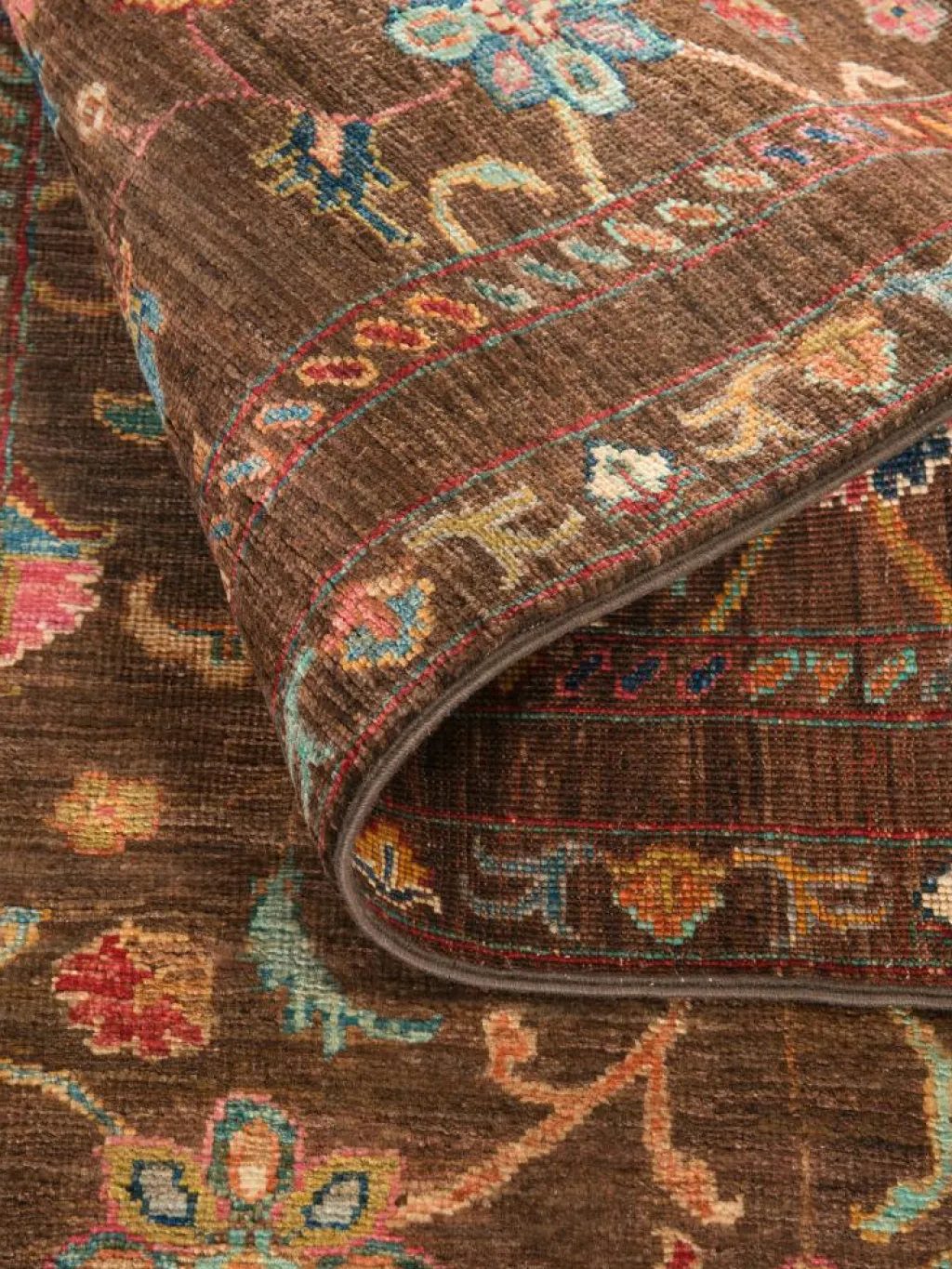 , einem klassischen Blütenmuster. Das Wort „Phool“ kommt aus der Pakistanischen Sprache Urdu und bedeutet „Blume“. Durch den flachen und festen Flor ist der Teppich unempfindlich gegenüber den Belastungen des Alltags. – Der Teppich wurde ausGhazni