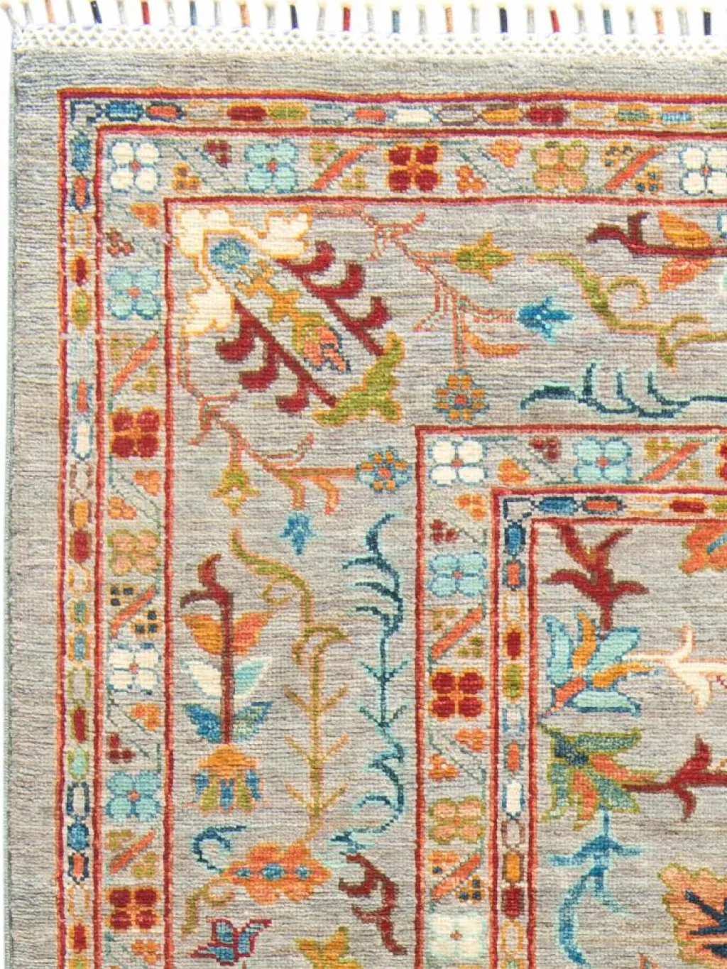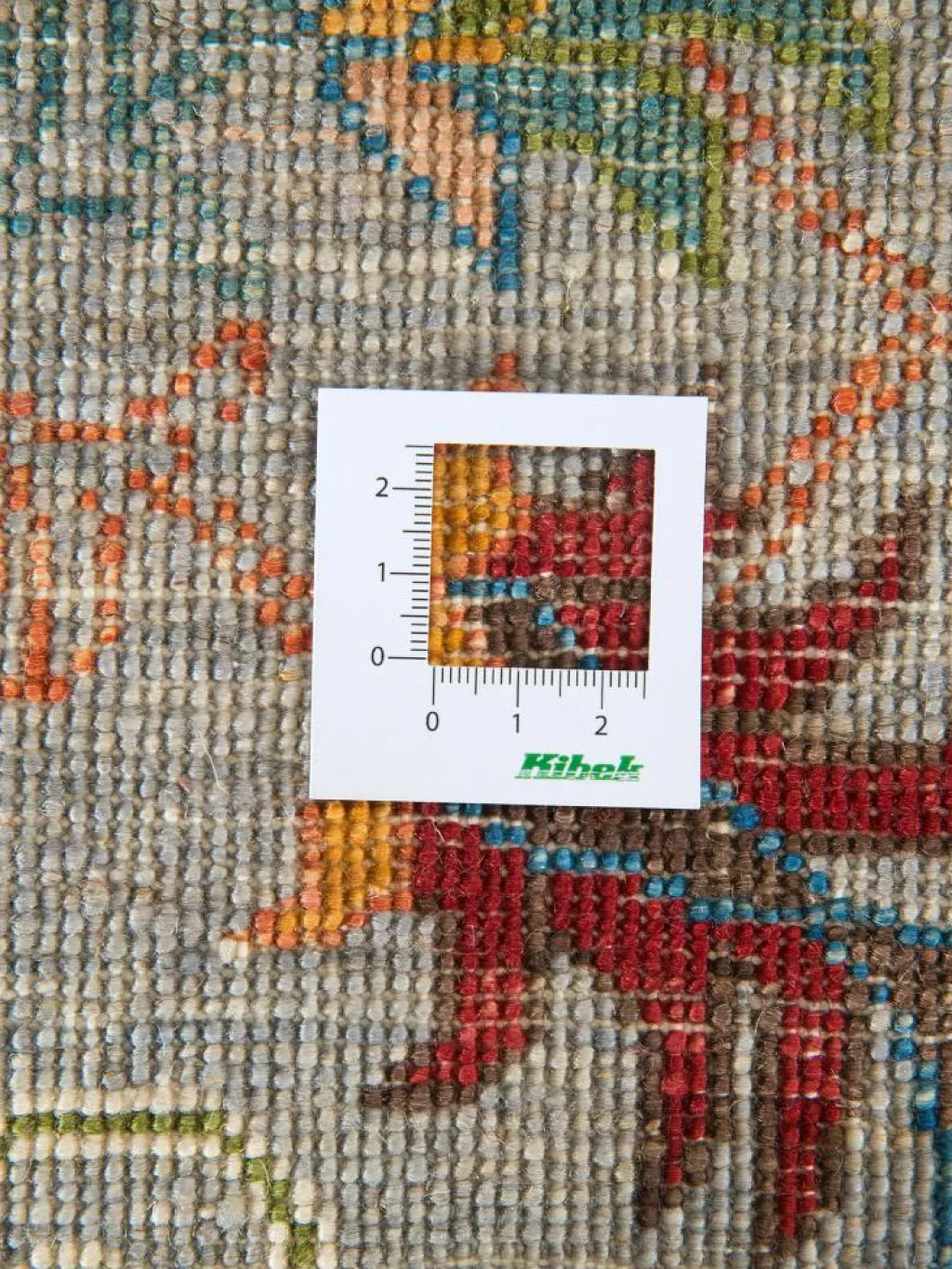 , einem klassischen Blütenmuster. Das Wort „Phool“ kommt aus der Pakistanischen Sprache Urdu und bedeutet „Blume“. Durch den flachen und festen Flor ist der Teppich unempfindlich gegenüber den Belastungen des Alltags. – Der Teppich wurde ausGhazni