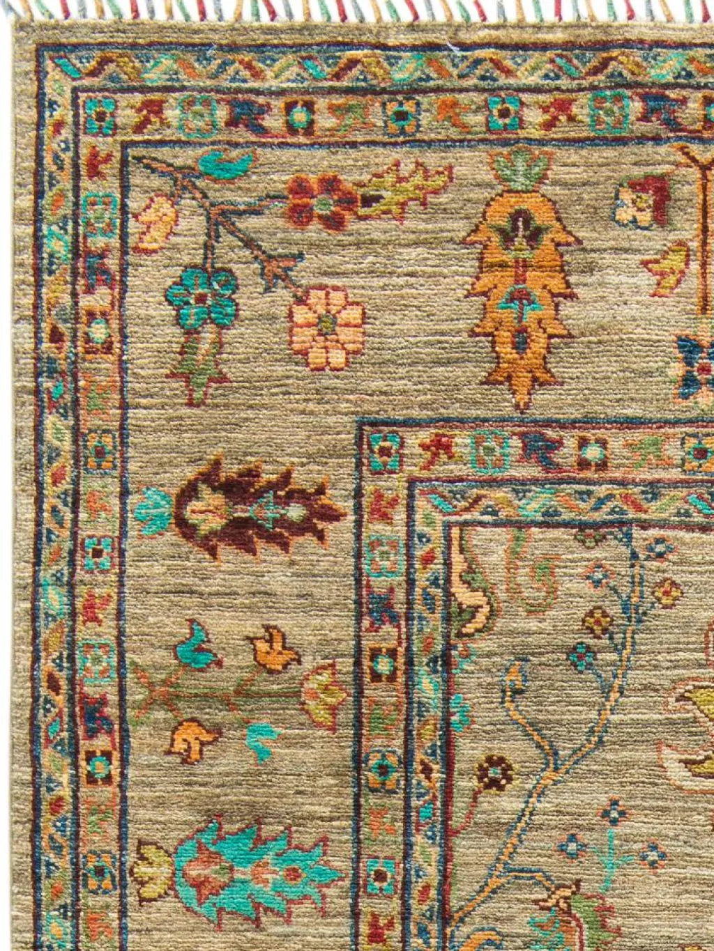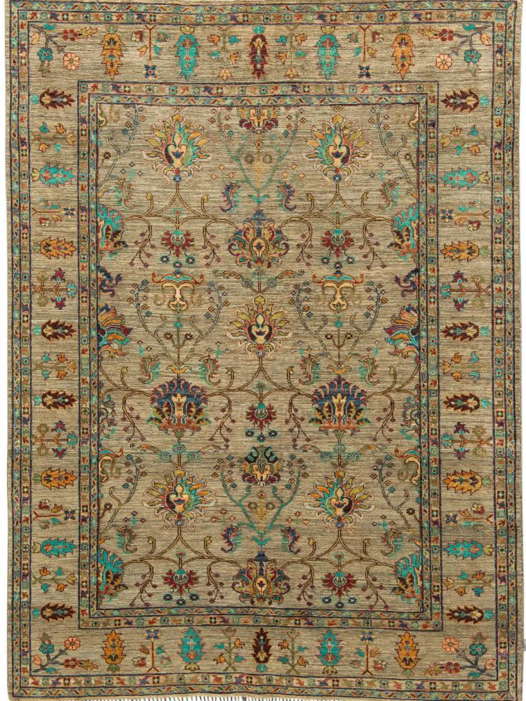 , einem klassischen Blütenmuster. Das Wort „Phool“ kommt aus der Pakistanischen Sprache Urdu und bedeutet „“Blume““. Durch den flachen und festen Flor ist der Teppich unempfindlich gegenüber den Belastungen des Alltags. – Der Teppich wurde ausGhazni