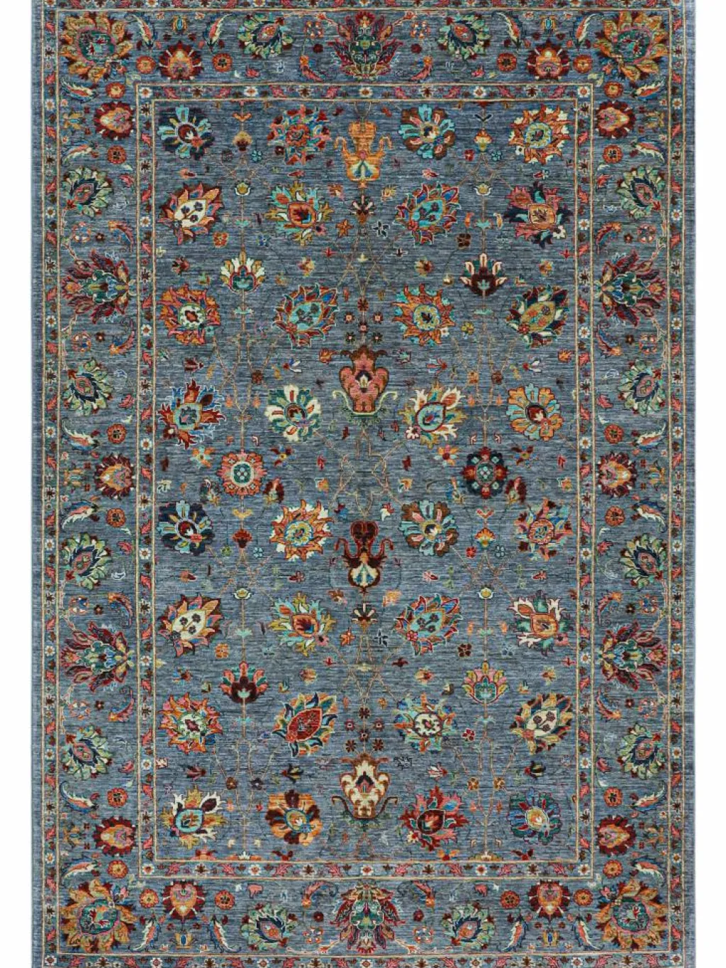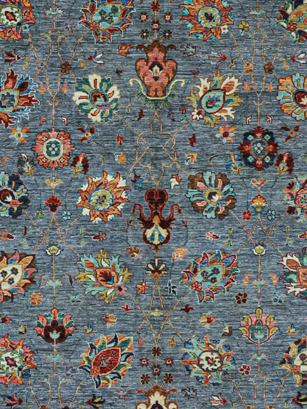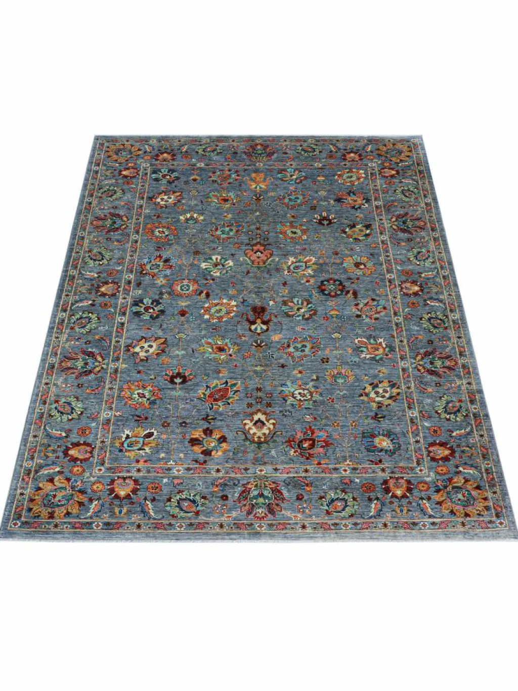 , einem klassischen Blütenmuster. Das Wort „Phool“ kommt aus der Pakistanischen Sprache Urdu und bedeutet „“Blume““. Durch den flachen und festen Flor ist der Teppich unempfindlich gegenüber den Belastungen des Alltags. – Der Teppich wurde ausGhazni