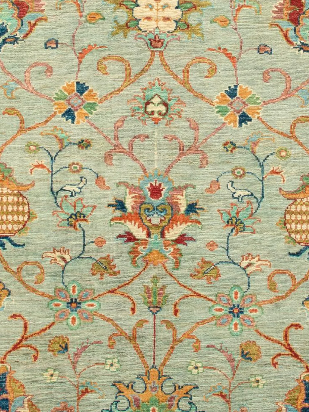 , einem klassischen Blütenmuster. Das Wort „Phool“ kommt aus der Pakistanischen Sprache Urdu und bedeutet „Blume“. Durch den flachen und festen Flor ist der Teppich unempfindlich gegenüber den Belastungen des Alltags. – Der Teppich wurde ausGhazni