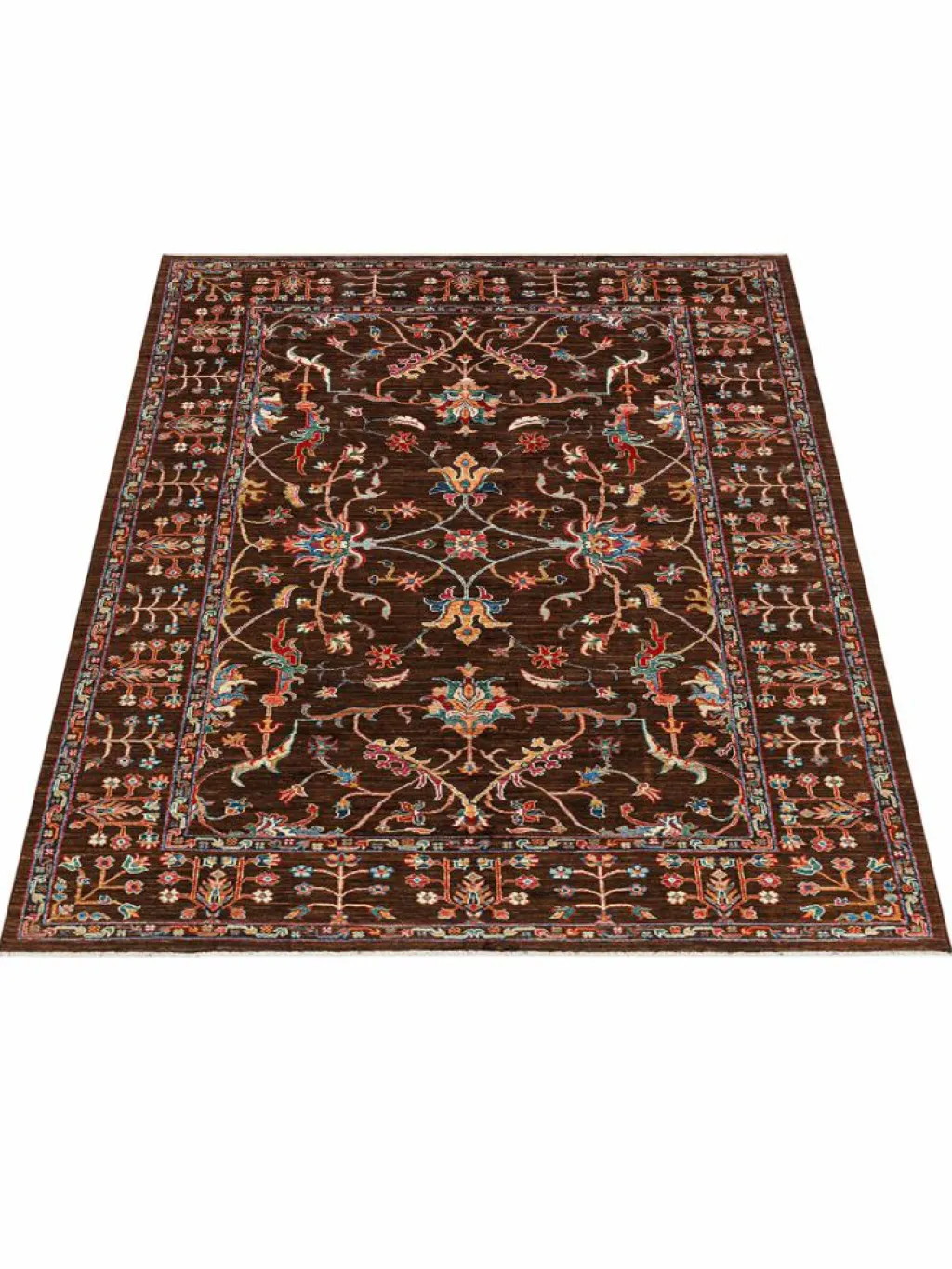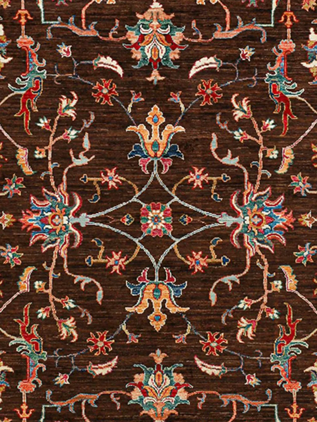 , einem klassischen Blütenmuster. Das Wort „Phool“ kommt aus der Pakistanischen Sprache Urdu und bedeutet „“Blume““. Durch den flachen und festen Flor ist der Teppich unempfindlich gegenüber den Belastungen des Alltags. – Der Teppich wurde ausGhazni
