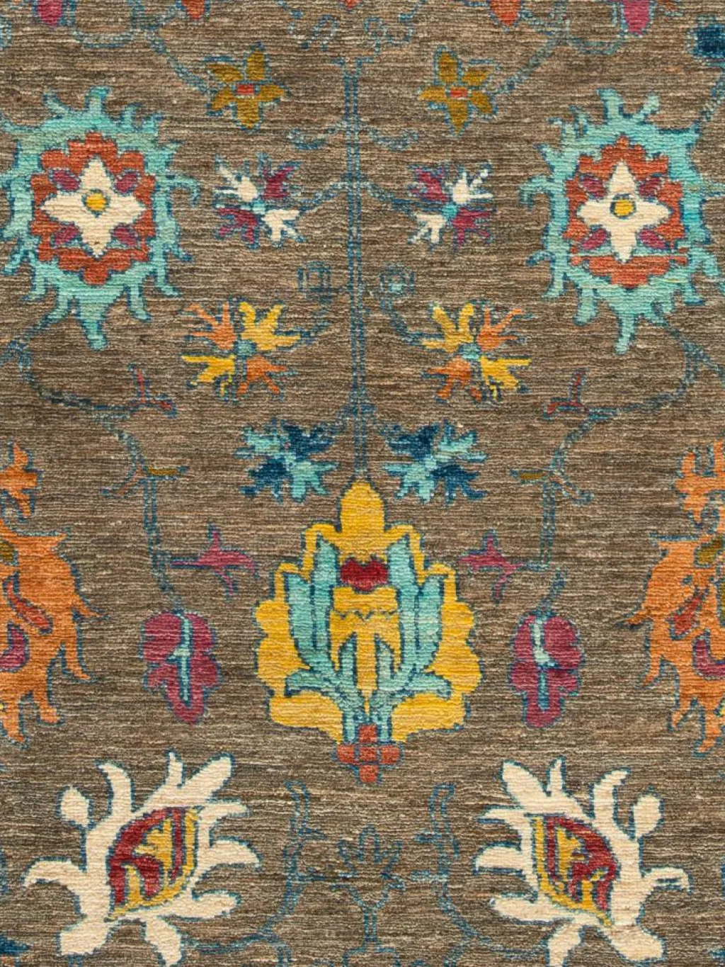 , einem klassischen Blütenmuster. Das Wort „Phool“ kommt aus der Pakistanischen Sprache Urdu und bedeutet „Blume“. Durch den flachen und festen Flor ist der Teppich unempfindlich gegenüber den Belastungen des Alltags. – Der Teppich wurde ausGhazni