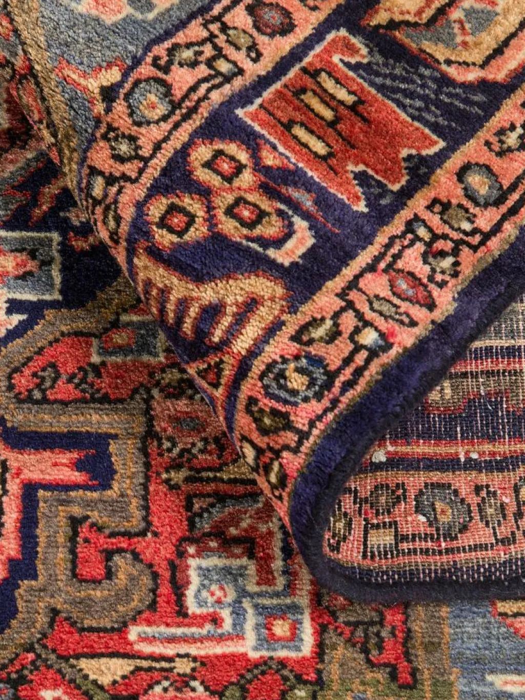 finden sich die unterschiedlichsten Dessins anderer Provenienzen, die in einer kurdentypischen Art und Weise, in völlig anderen Farben, geknüpft werden. Meist ist die Farbgebung der Teppiche eher dunkel. Der hohe Flor ist aus guter Bergschafwolle und besonders haltbar.| Gesamthöhe: | ca. 12 mm |