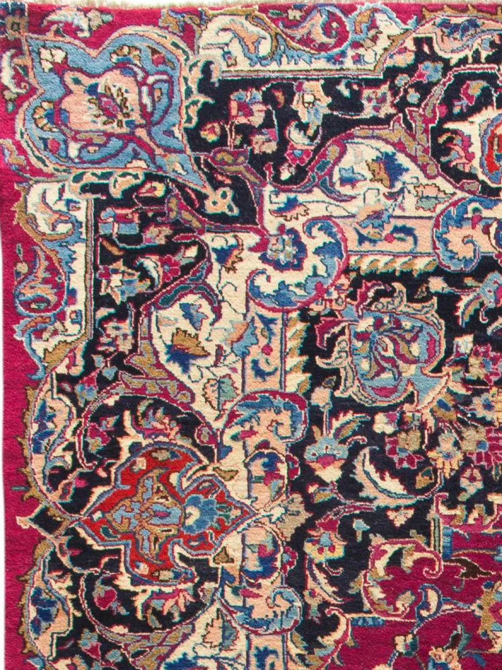 gehört zu den Hauptprovenienzen der persischen Orientteppiche.Typisch ist eine tiefrote Grundfarbe mit einer leichten Lilatönung und sehr feinen floralen Musterkompositionen mit Ranken undLexikon