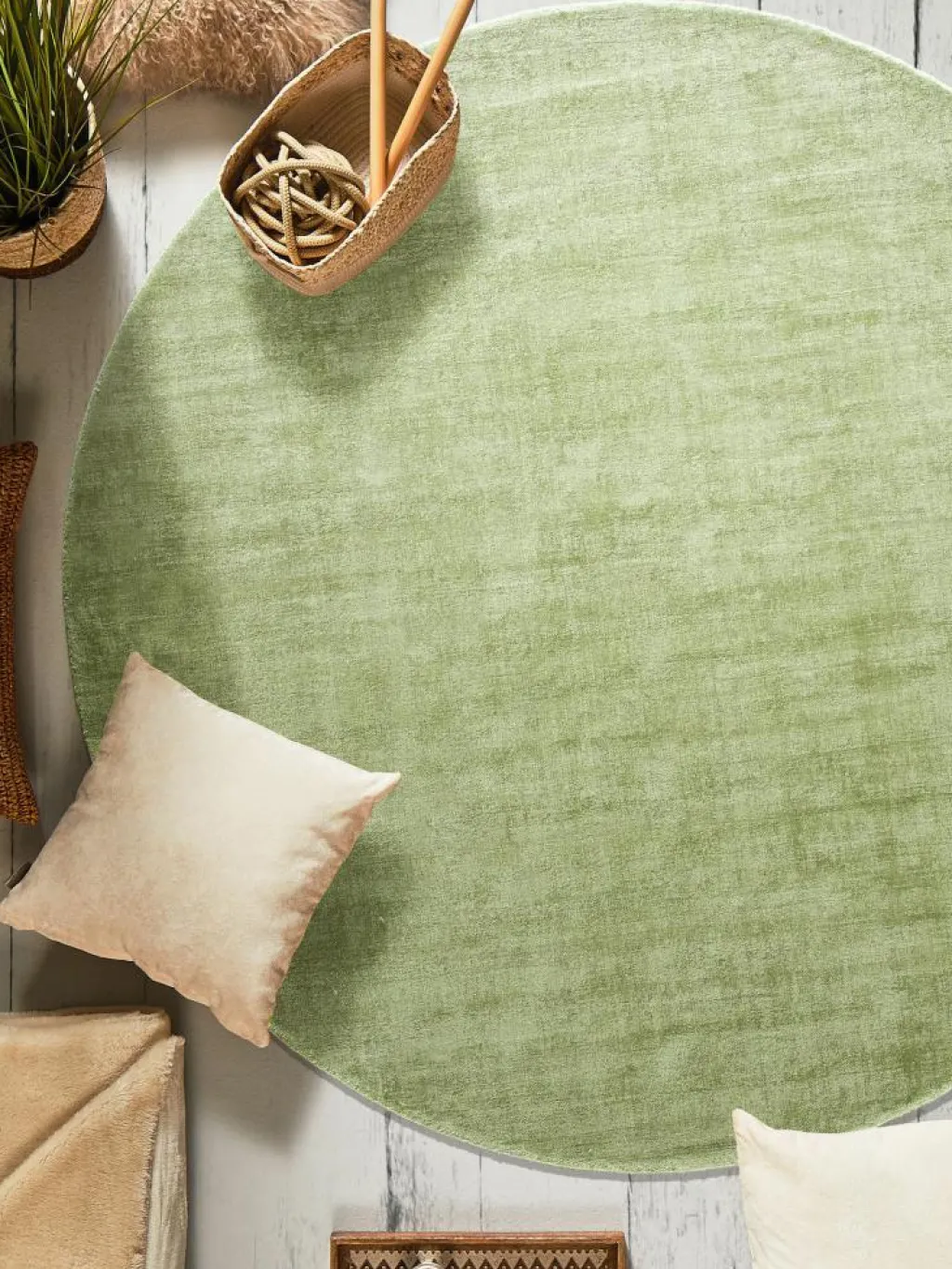 Ein echtes Highlight der Raumgestaltung. Schmeichelnd weicher Flor aus hochwertiger Bambusseide gefertigt in ausgefeilter Handwerkskunst. Perfekt passend zum lässig eleganten Wohnstyle. Und den typisch günstigen Kibek-Preis haben wir auch nicht vergessen. Hier in den runden Maßen. Auch in eckig und oval erhältlich. Oberfläche aus 100%