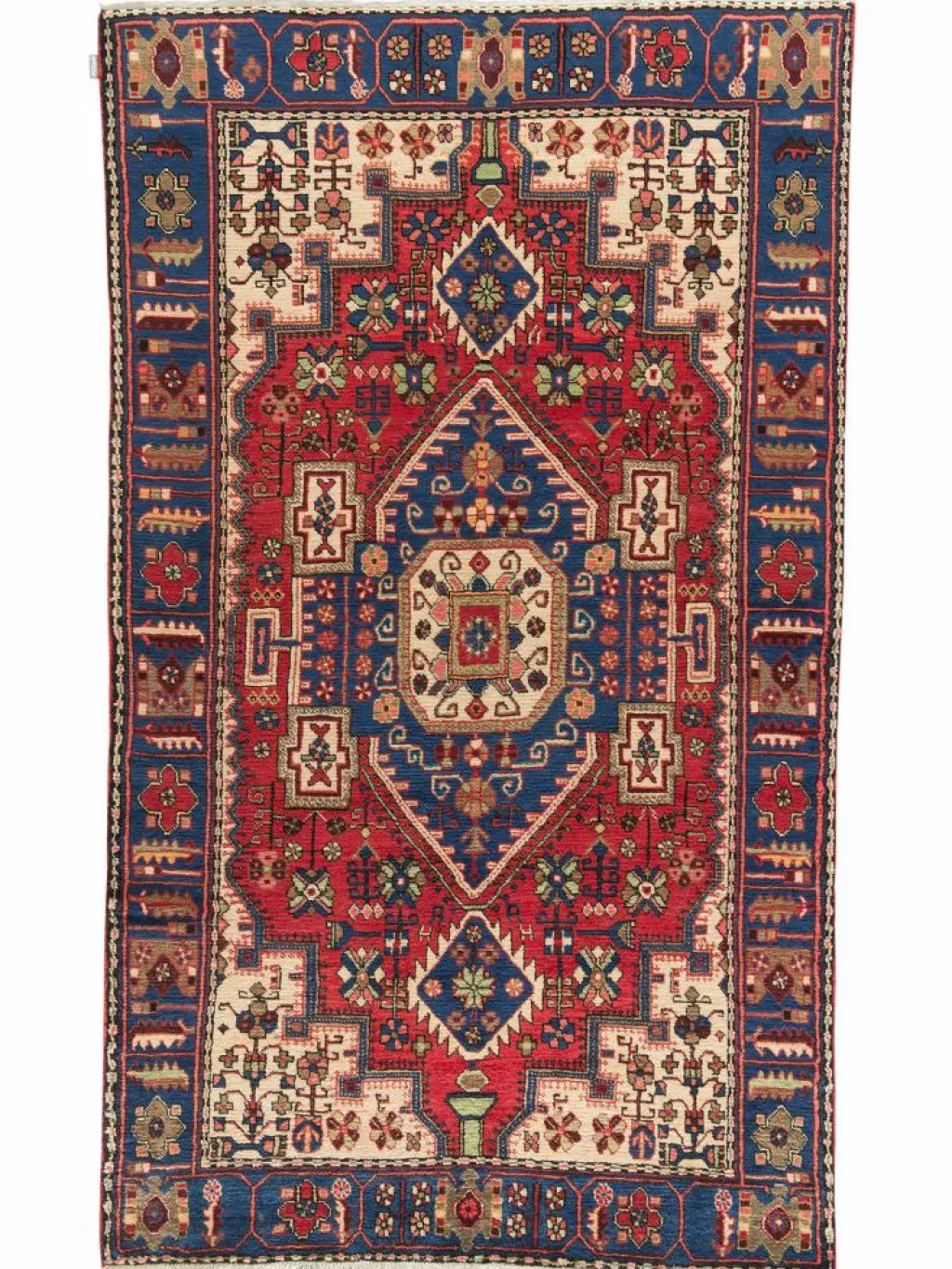 gehört zu den ältesten existierenden Städten Persiens. Der Flor ist relativ hoch und weich. Blüten, Blätter, Zweige und Vasen gruppieren sich in stark stilisierter Form um ein Mittelmedaillon.Die Gegend umHamadan