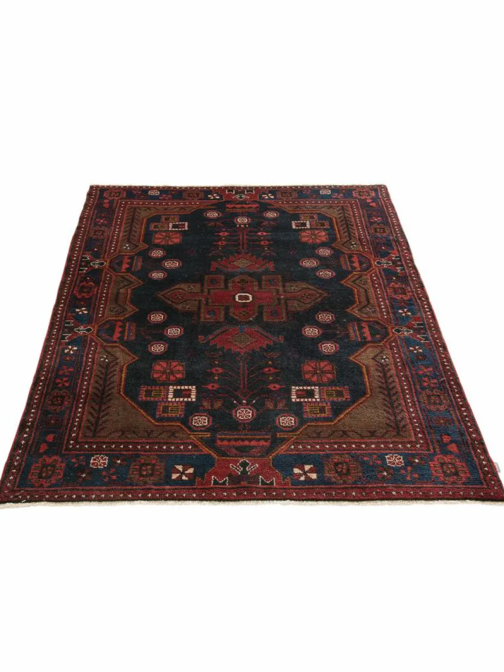 gehört zu den ältesten existierenden Städten Persiens. Der Flor ist relativ hoch und weich. Blüten, Blätter, Zweige und Vasen gruppieren sich in stark stilisierter Form um ein Mittelmedaillon.Die Gegend umHamadan