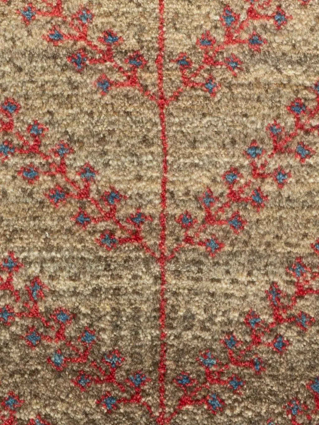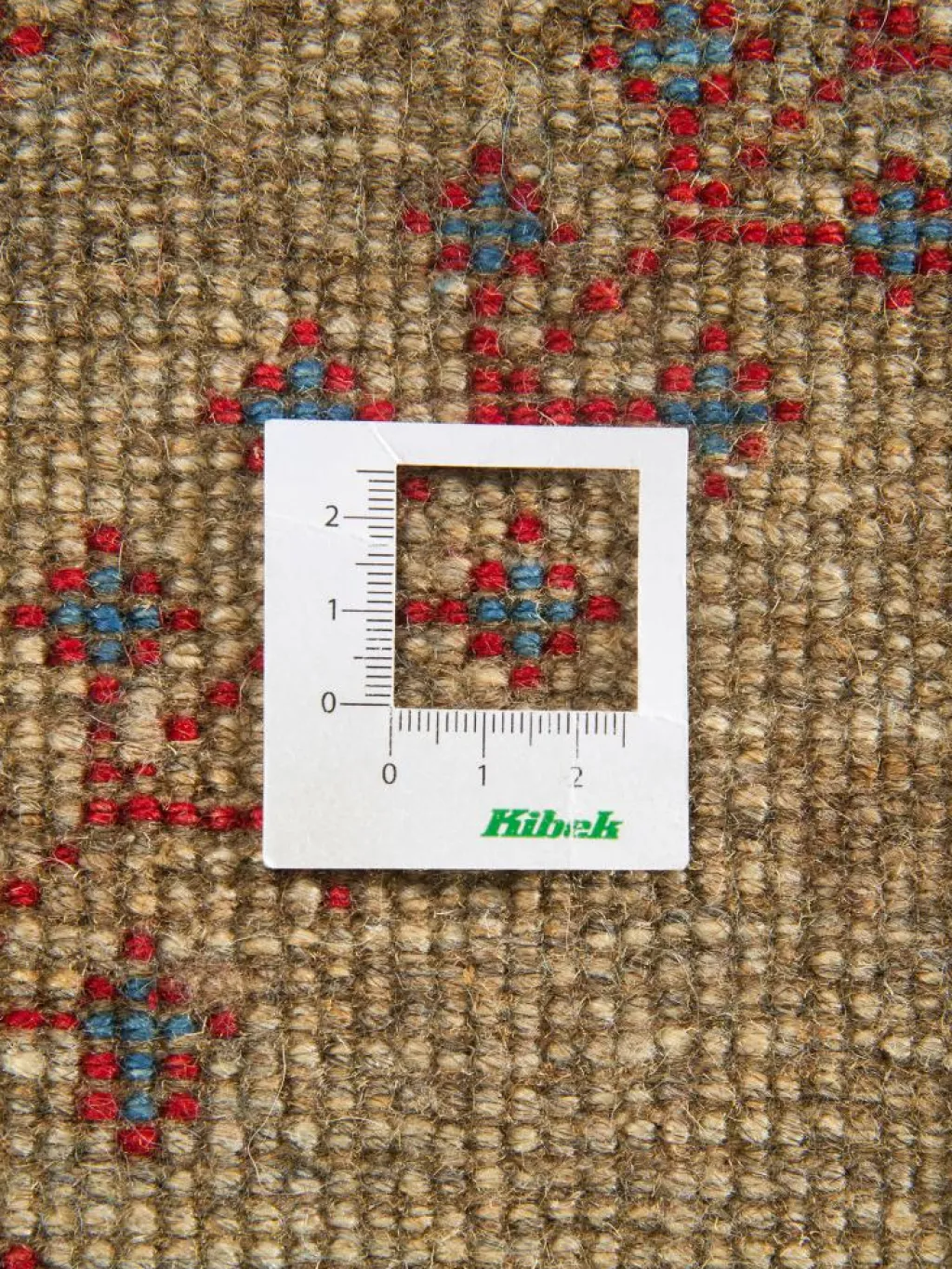 . Die Schur ist relativ hoch, der Griff fest. Die Muster sind meist schlicht oder eine Kombination mit traditionellen Mustern. Mustervorlagen gibt es nicht. Geknüpft werden alle Muster aus dem Kopf.| Gesamthöhe: | ca. 18 mm |