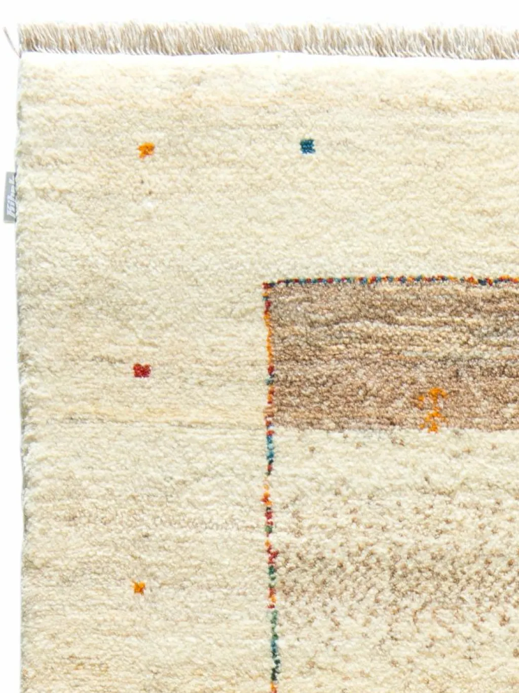 . Die Schur ist relativ hoch, der Griff fest. Die Muster sind meist schlicht oder eine Kombination mit traditionellen Mustern. Mustervorlagen gibt es nicht. Geknüpft werden alle Muster aus dem Kopf.| Gesamthöhe: | ca. 18 mm |