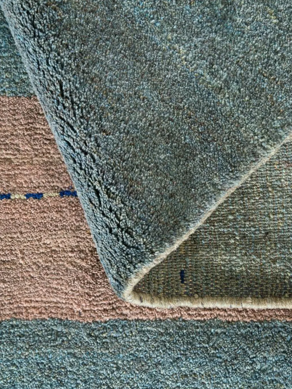 . Die Schur ist relativ hoch, der Griff fest. Die Muster sind meist schlicht oder eine Kombination mit traditionellen Mustern. Mustervorlagen gibt es nicht. Geknüpft werden alle Muster aus dem Kopf.| Gesamthöhe: | ca. 18 mm |
