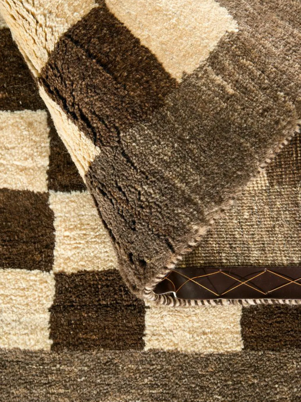 . Die Schur ist relativ hoch, der Griff fest. Die Muster sind meist schlicht oder eine Kombination mit traditionellen Mustern. Mustervorlagen gibt es nicht. Geknüpft werden alle Muster aus dem Kopf.| Gesamthöhe: | ca. 18 mm |