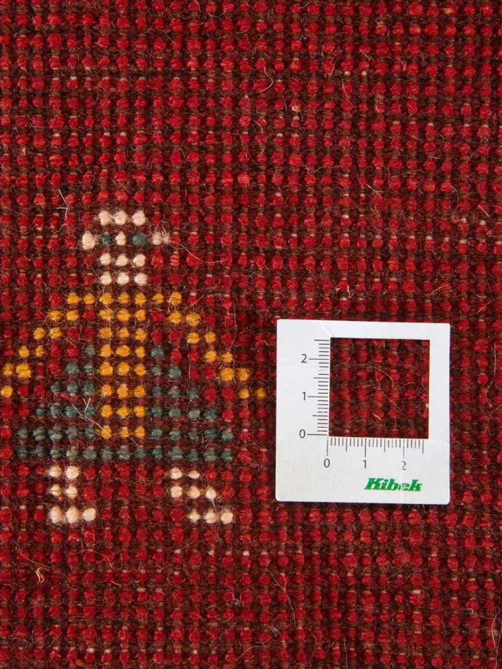 . Die Schur ist relativ hoch, der Griff fest. Die Muster sind meist schlicht oder eine Kombination mit traditionellen Mustern. Mustervorlagen gibt es nicht. Geknüpft werden alle Muster aus dem Kopf.| Gesamthöhe: | ca. 18 mm |