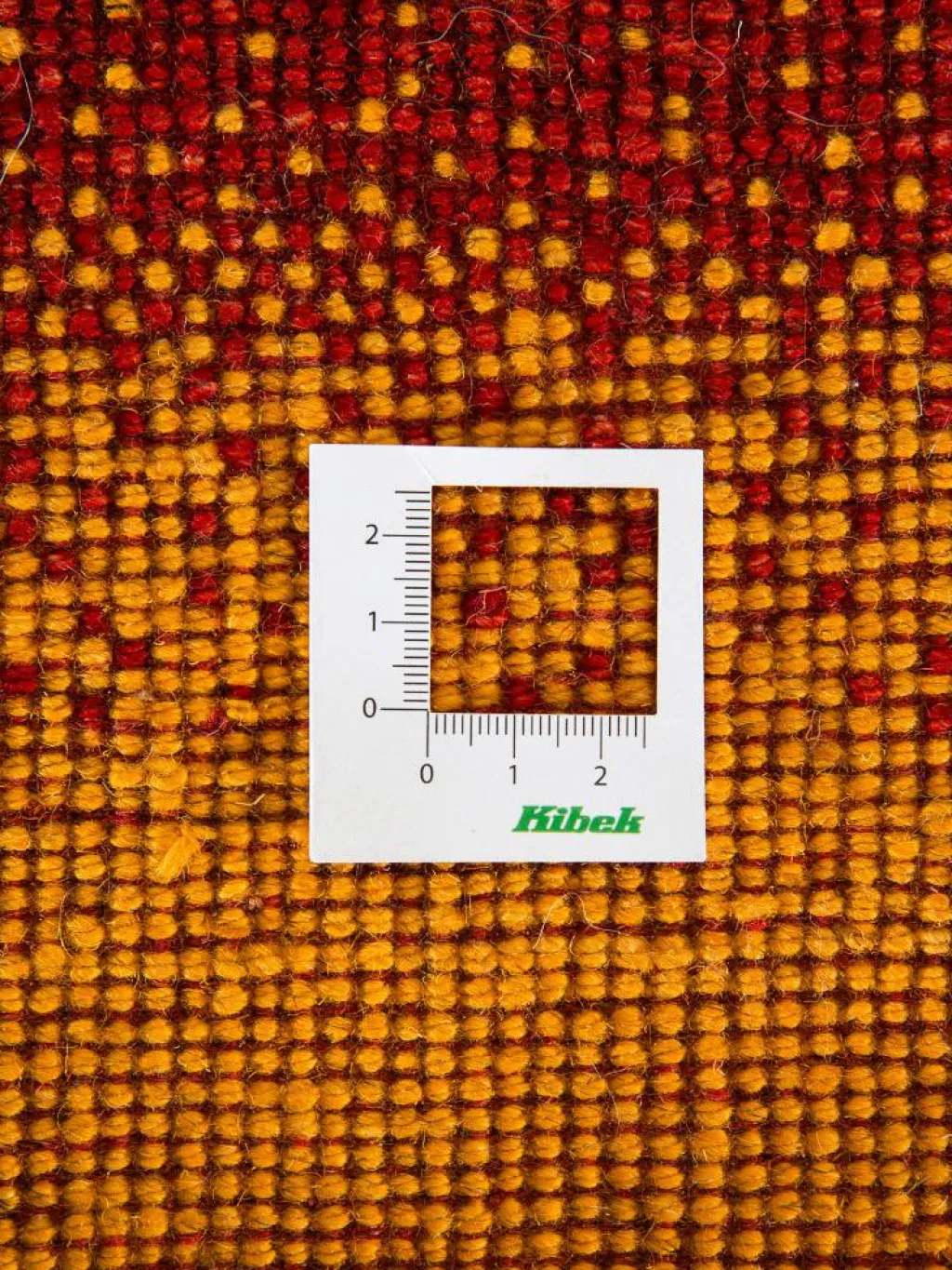 . Die Schur ist relativ hoch, der Griff fest. Die Muster sind meist schlicht oder eine Kombination mit traditionellen Mustern. Mustervorlagen gibt es nicht. Geknüpft werden alle Muster aus dem Kopf.| Gesamthöhe: | ca. 18 mm |