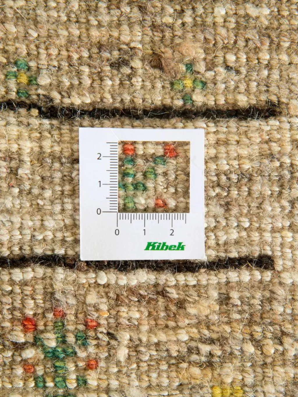 . Die Schur ist relativ hoch, der Griff fest. Die Muster sind meist schlicht oder eine Kombination mit traditionellen Mustern. Mustervorlagen gibt es nicht. Geknüpft werden alle Muster aus dem Kopf.| Gesamthöhe: | ca. 18 mm |
