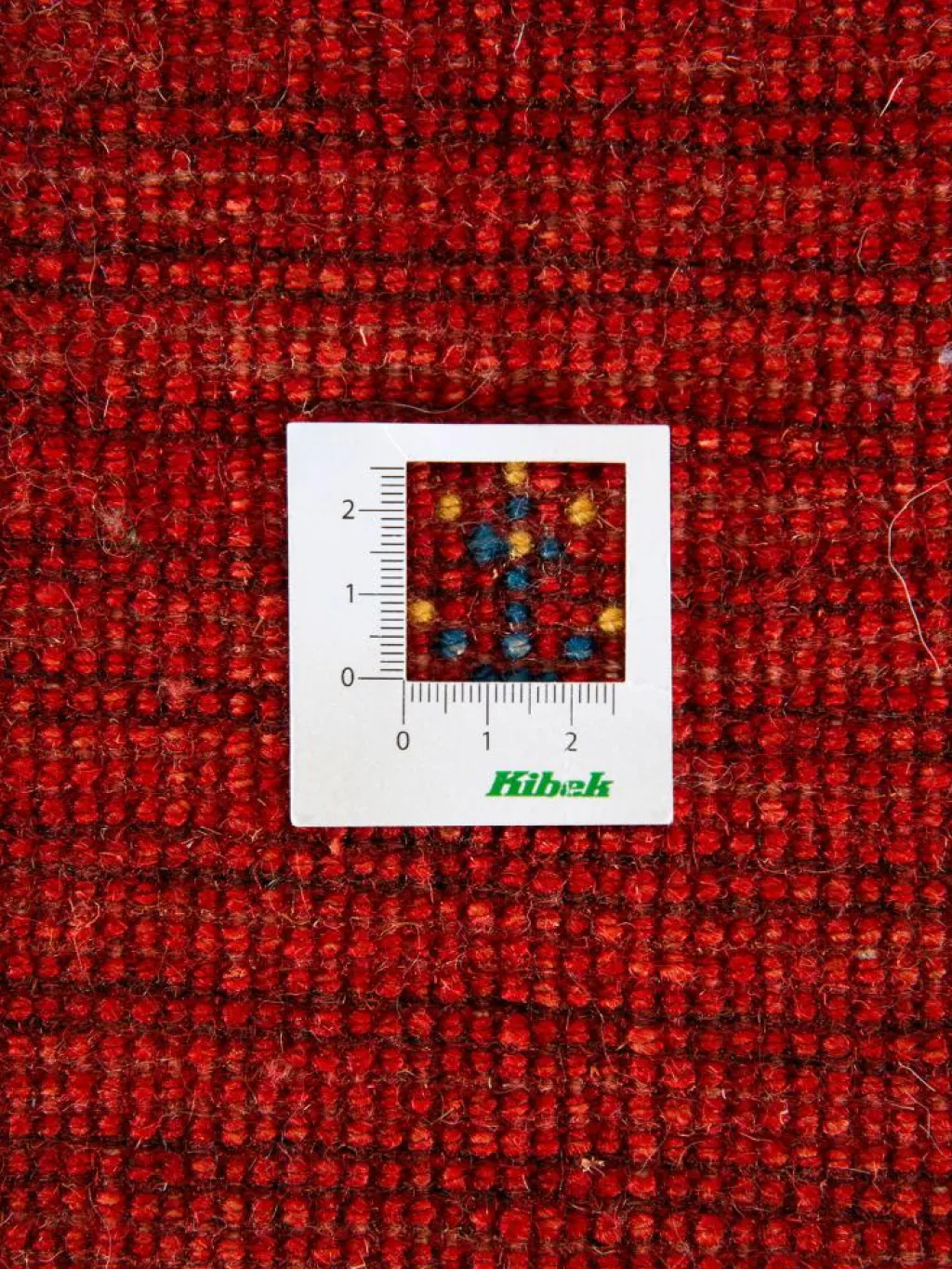 . Die Schur ist relativ hoch, der Griff fest. Die Muster sind meist schlicht oder eine Kombination mit traditionellen Mustern. Mustervorlagen gibt es nicht. Geknüpft werden alle Muster aus dem Kopf.| Gesamthöhe: | ca. 18 mm |