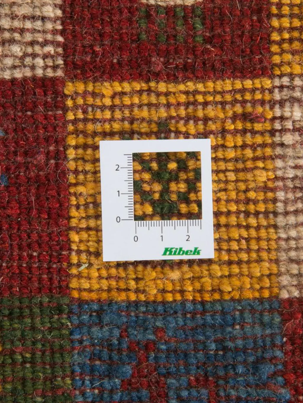 . Die Schur ist relativ hoch, der Griff fest. Die Muster sind meist schlicht oder eine Kombination mit traditionellen Mustern. Mustervorlagen gibt es nicht. Geknüpft werden alle Muster aus dem Kopf.| Gesamthöhe: | ca. 19 mm |