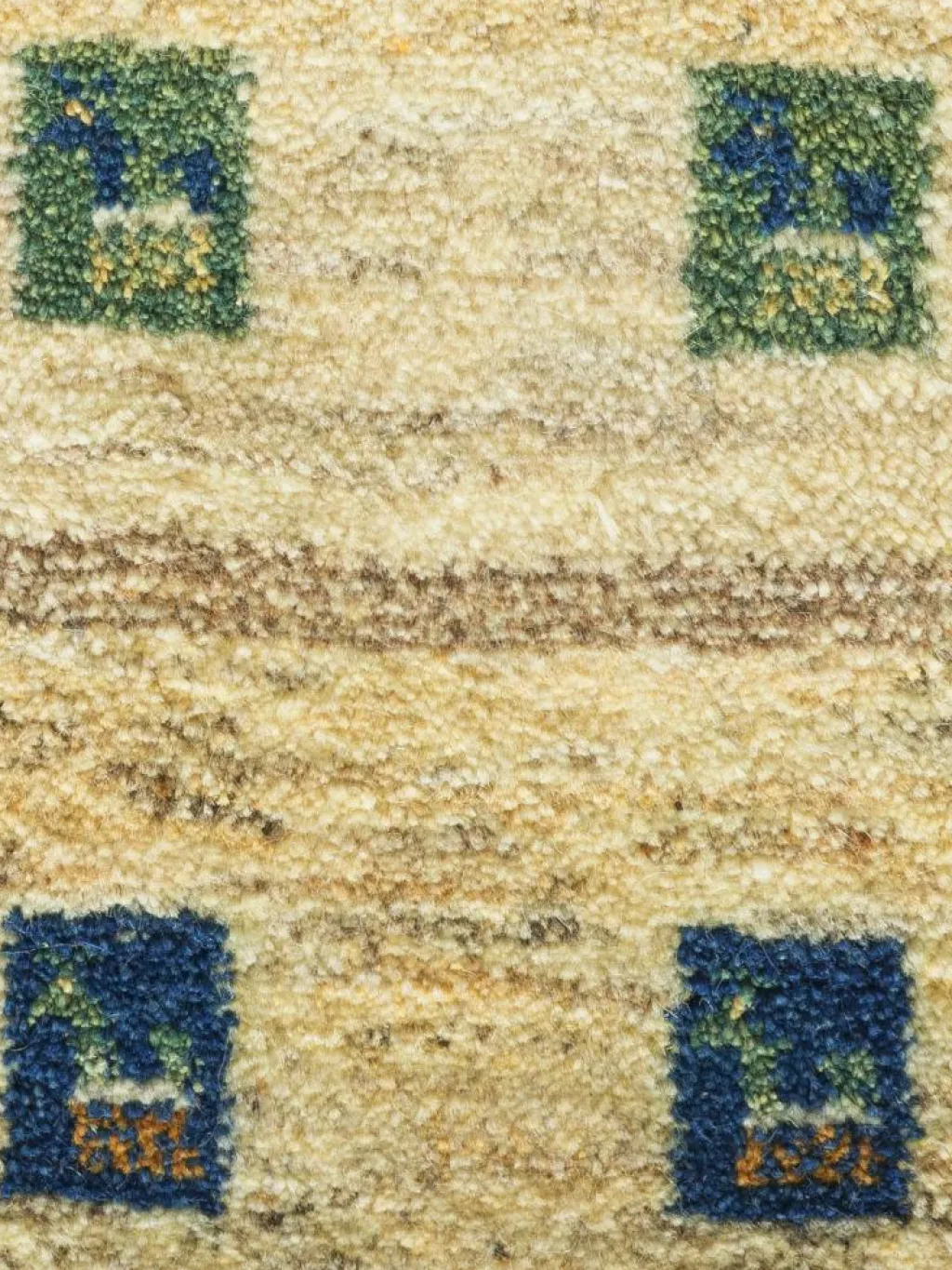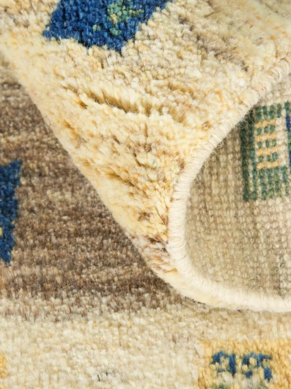 . Die Schur ist relativ hoch, der Griff fest. Die Muster sind meist schlicht oder eine Kombination mit traditionellen Mustern. Mustervorlagen gibt es nicht. Geknüpft werden alle Muster aus dem Kopf.| Gesamthöhe: | ca. 19 mm |