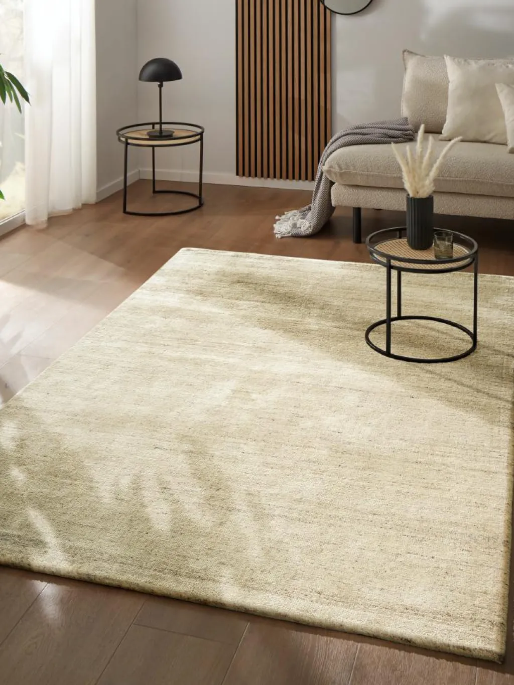 -Teppich besteht aus 90 % ungefärbter NeuseelandSchurwolle