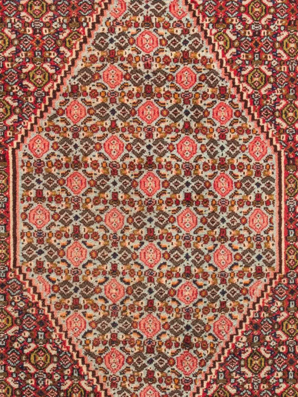 -Muster vor, meist in Verbindung mit mehreren Hexagonen. Die Teppiche ähneln denBidjar