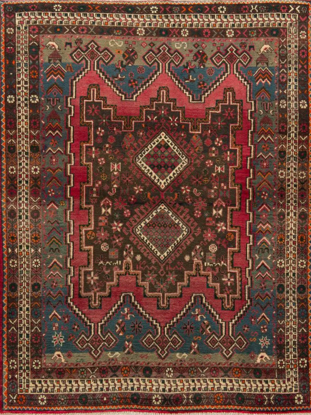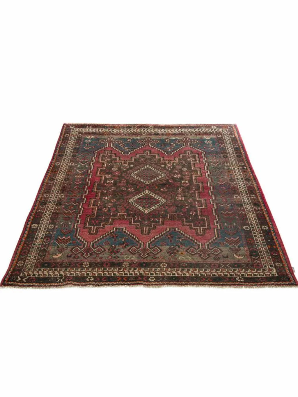 im Südosten Persiens geknüpft. Typisch für diese Teppiche ist das Sekaleh-Muster. Ein 3-köpfiges Muster, „“seh““=3 und „“kaleh““=Kopf, das auch als 5-köpfige Variante geknüpft wird. Ein zweites typisches Muster ist das Heshmati, benannt nach dem Namen seines Erfinders. DasGrundgewebe