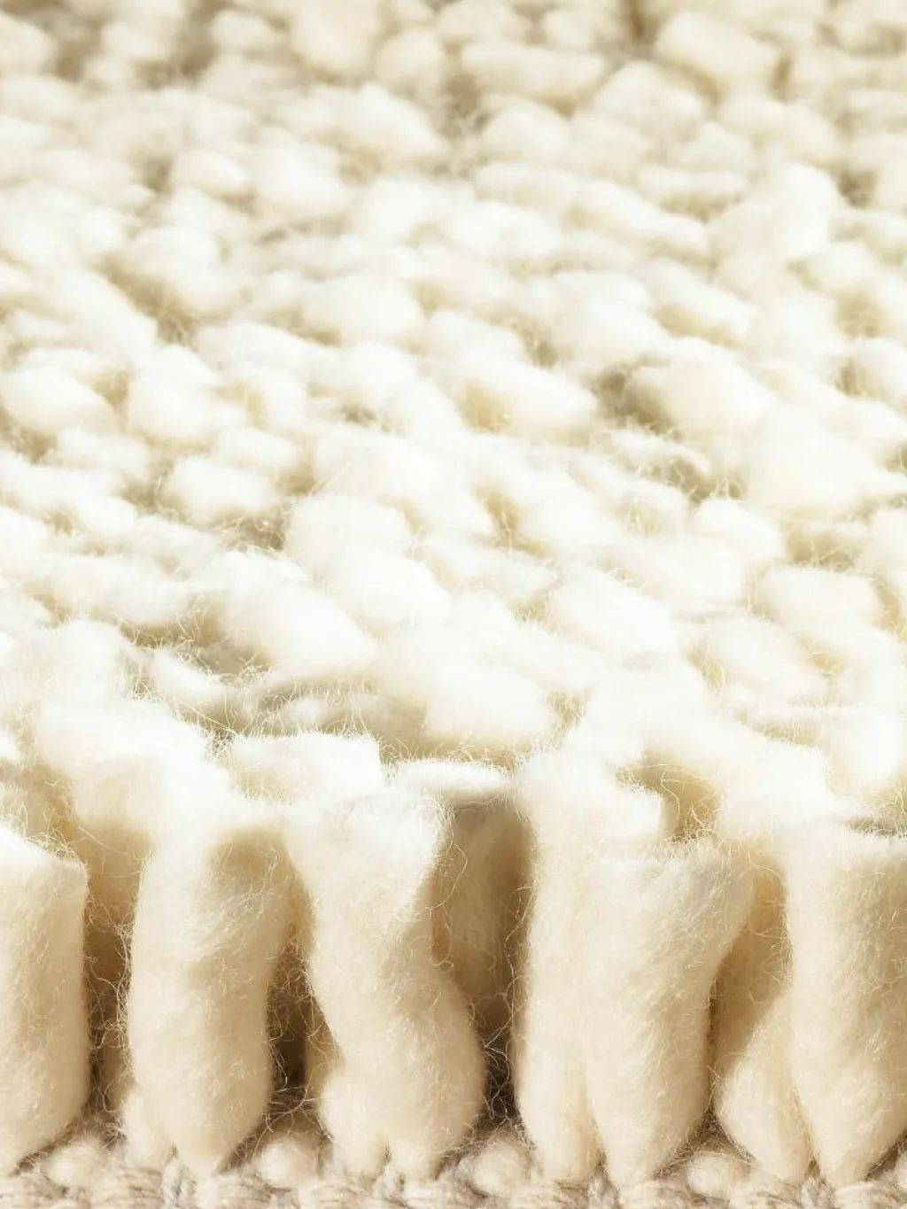 , sondern die interessante Oberfläche: besonders dicke Dochtgarne werden miteinander von Hand gewalkt, so dass Dochte von ca. 1 cm Durchmesser und mehr entstehen. Diese Dochte werden dann in Handarbeit in den Teppichgrund eingearbeitet und später auf gleichmäßiger Höhe abgeschnitten, so dass der Docht ein flächiges Ende erhält. Dadurch, dass der Docht nicht spitz zuläuft, sondern flach ist, entsteht der originelle Oberflächen-Effekt des WOOLWALKER ROYAL. Dieser Flor ist nicht nur besonders schick, sondern auch sehr belastbar. Die Filzdochte sind äußerst widerstandsfähig und machen den WOOLWALKER ROYAL zu einem sehr langlebigen Blickfang für ein modernes Zuhause! Flormaterial: reineNeuseelandwolle
